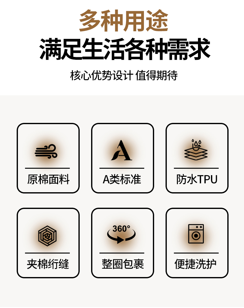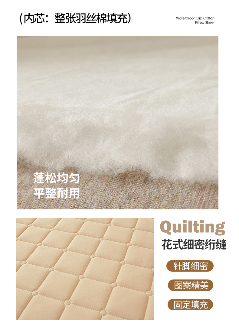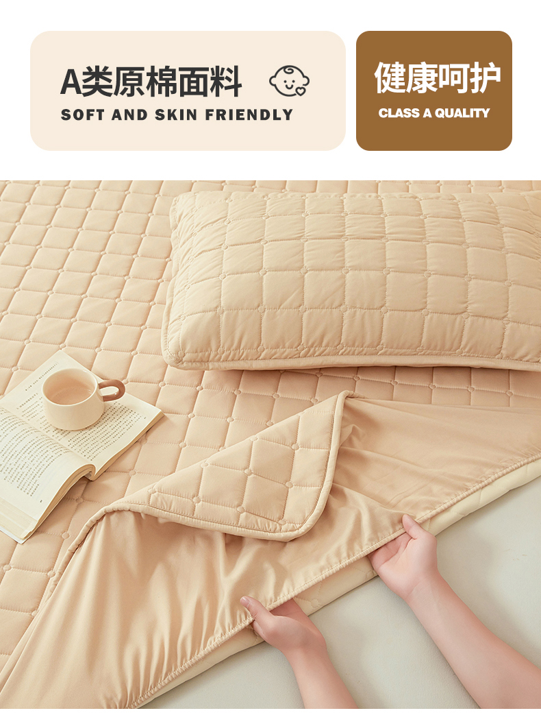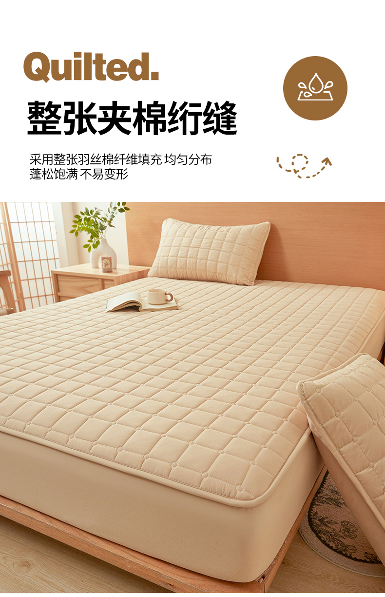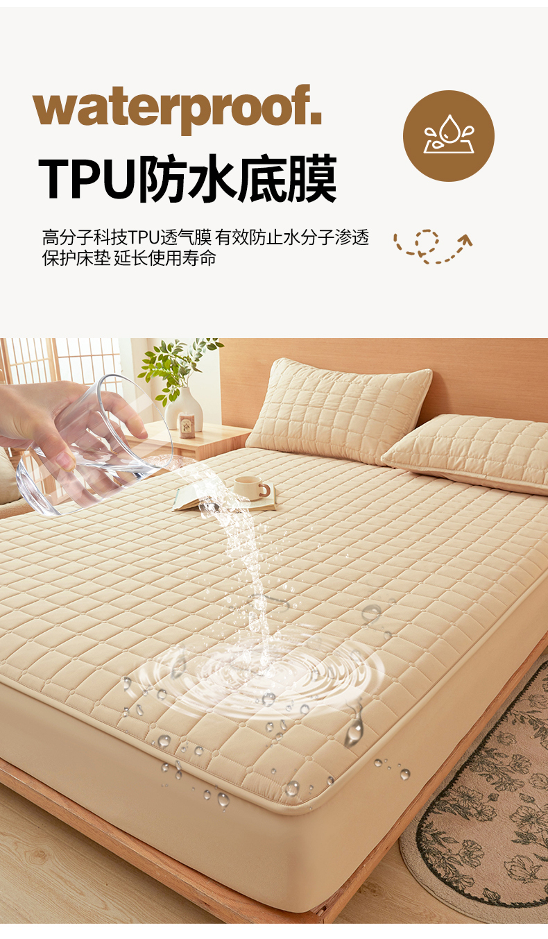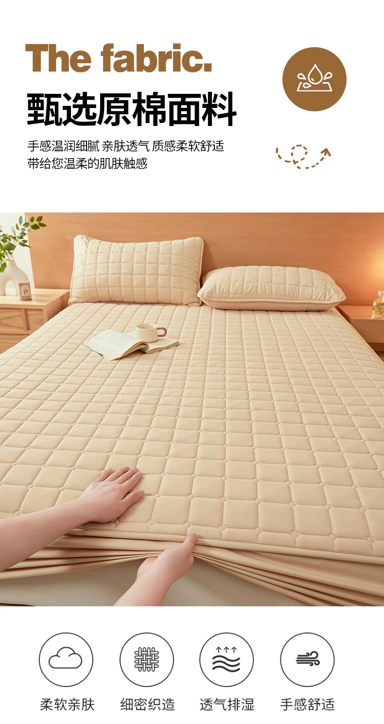 (总)魅图家纺 2025新款A类原棉防水夹棉床笠,流金,浅玉,云白,云灰
