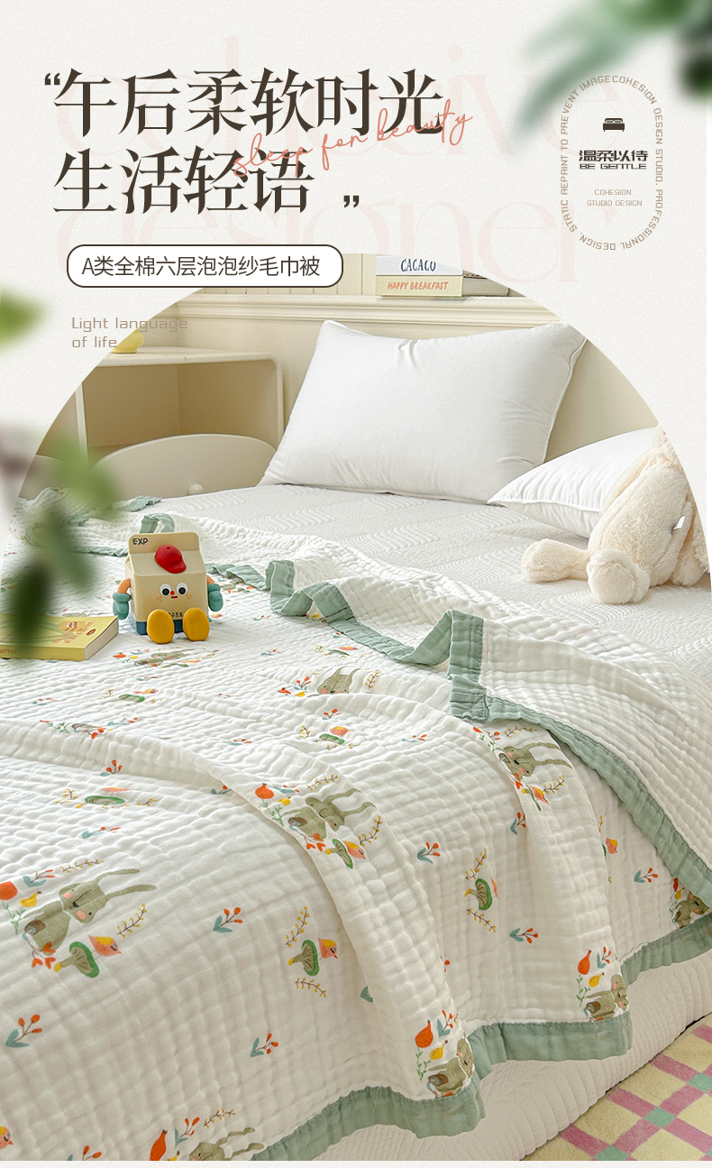 商品名称:萌飞 2025新款全棉纯棉六层纱布泡泡纱布毛巾被夏凉被空调被 萌熊乐园