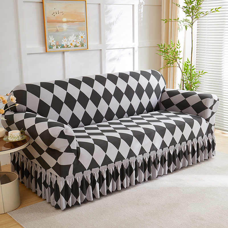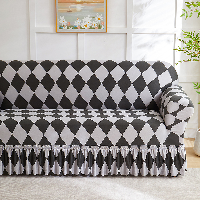 共鸣沙发套 2025新款牛奶丝系列沙发套(裙摆款) 记忆格