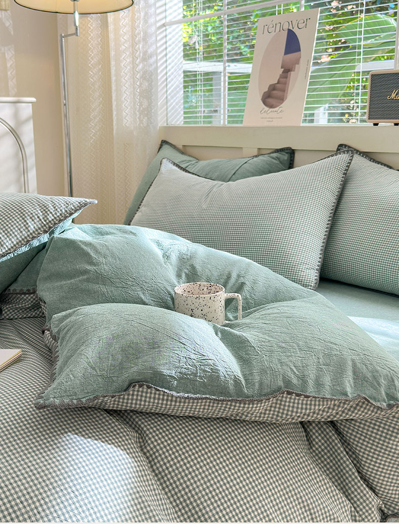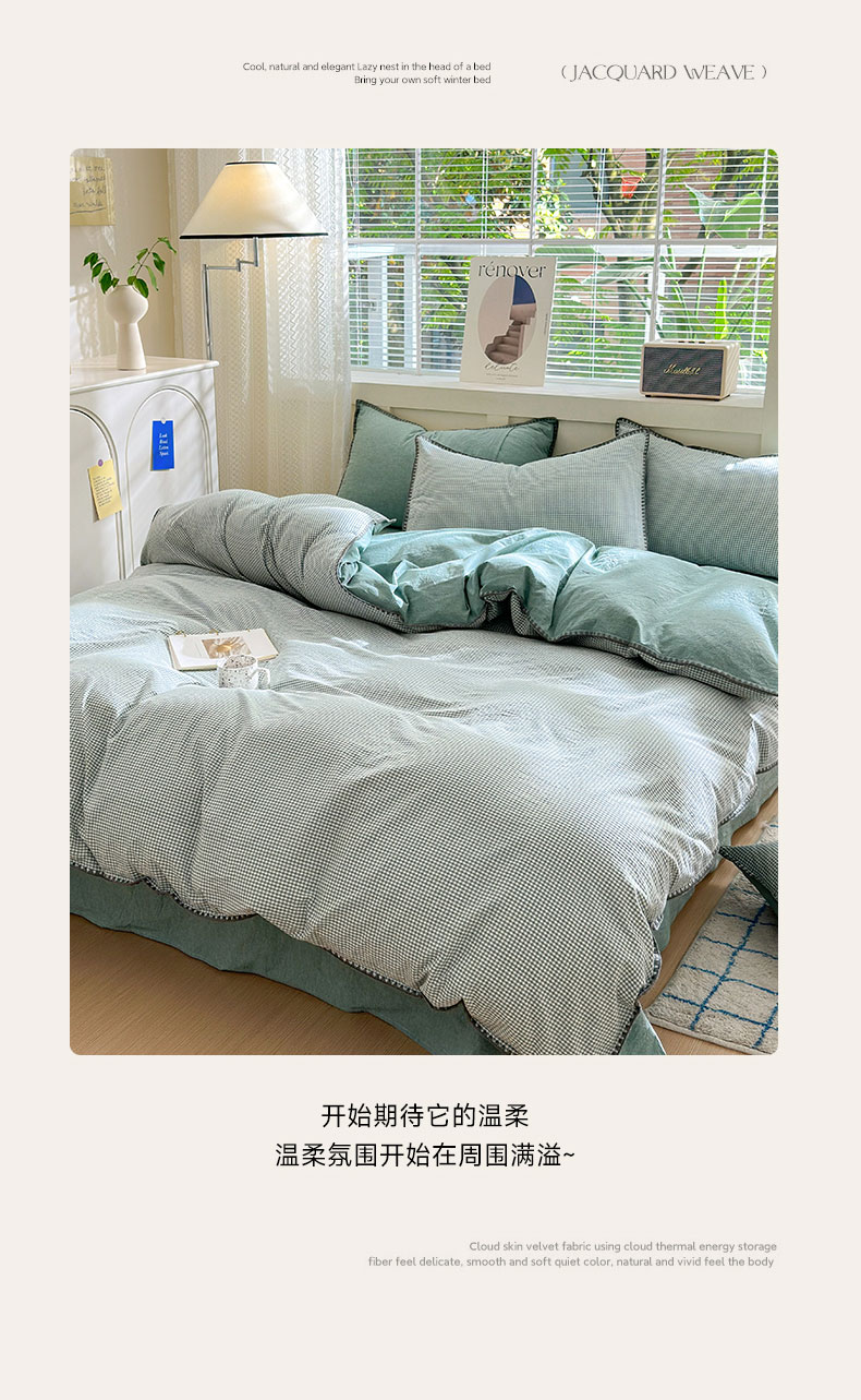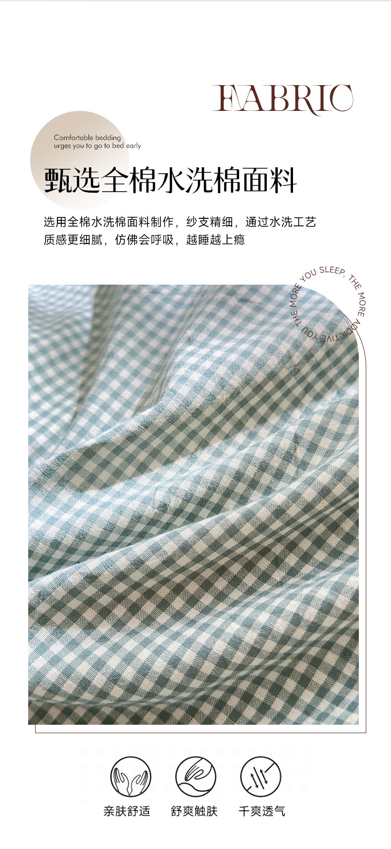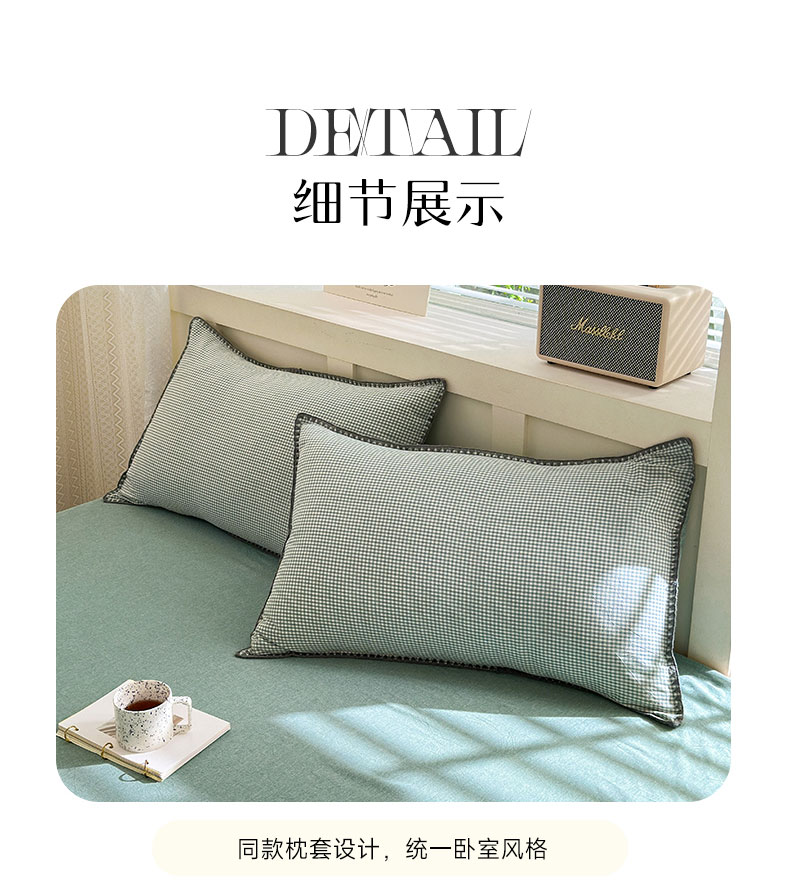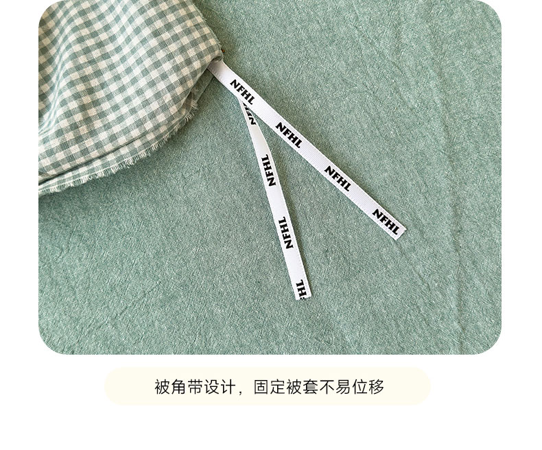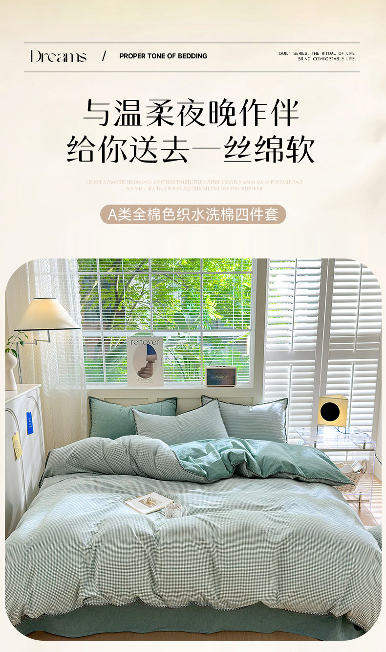 当前位置: 91家纺网 > 商品网购 > 床品套件 > 四件套 > 全棉普通四件套 > 晚依家纺 2025新款A类全棉色织水洗棉被套单件格子条纹四件套学生宿舍被罩三件套定制定做 遇见-草绿