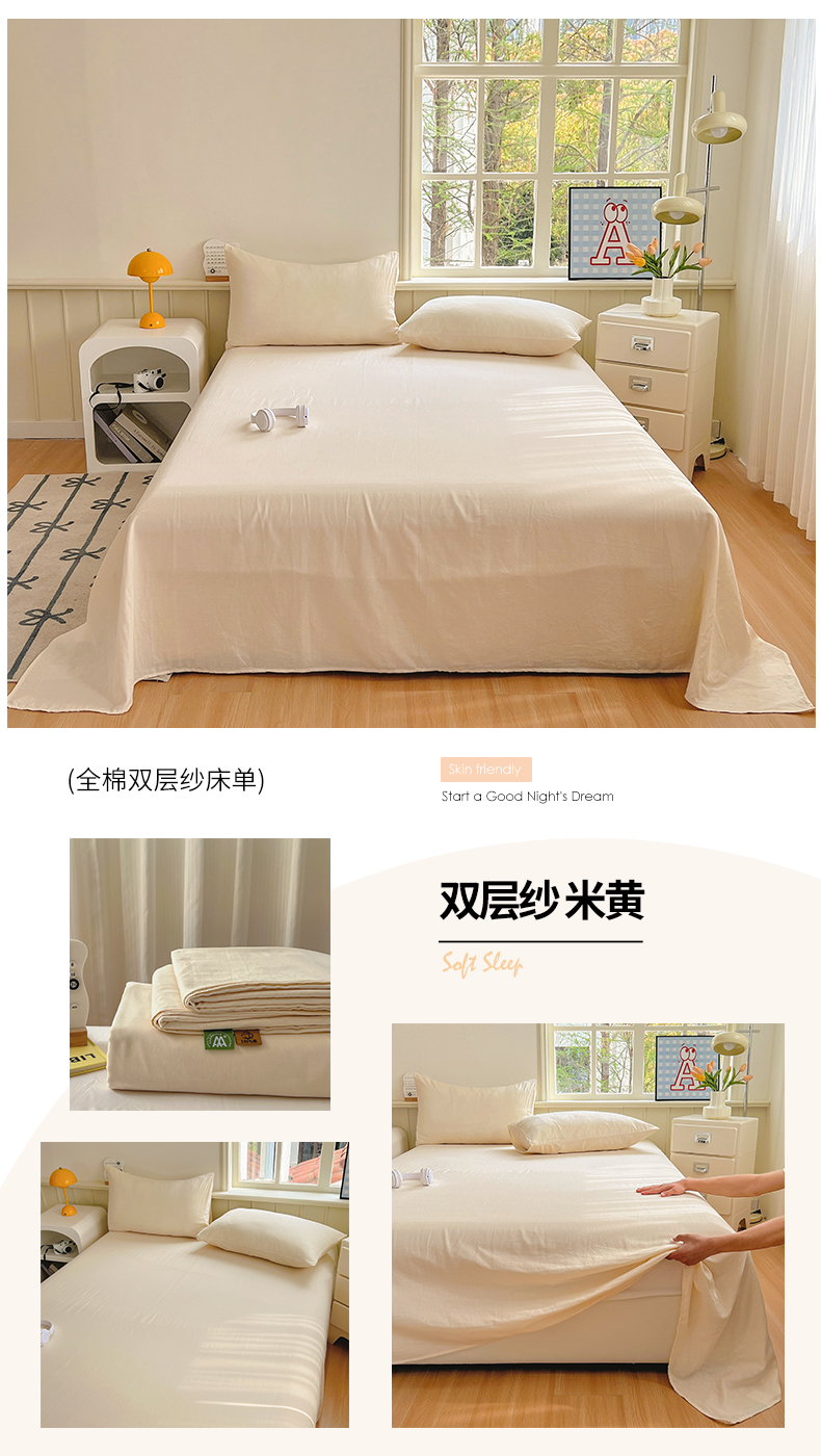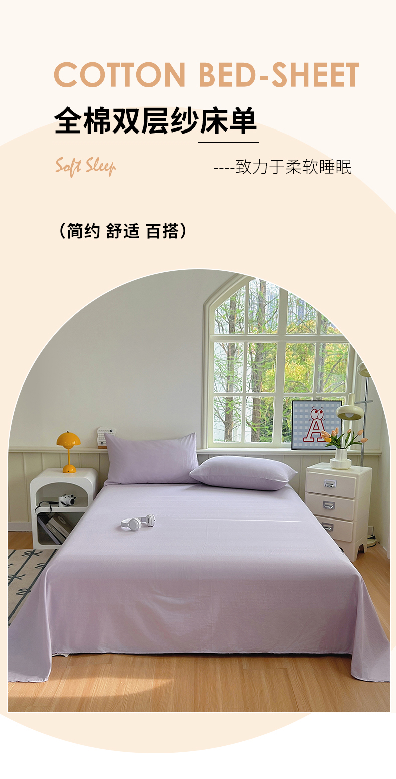 柠萌家居 2025年新款A类母婴级纯棉双层纱床单全棉床单 双层纱丁香紫