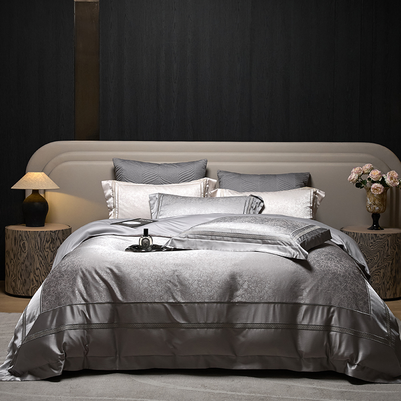 洽想家 2025新款高精密贡缎色织大提花四件套-夜曲 夜曲-灰