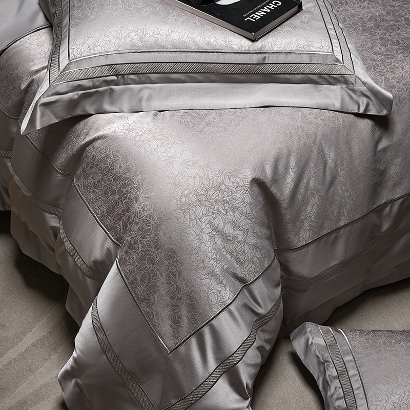 商品名称:洽想家 2025新款高精密贡缎色织大提花四件套-夜曲 夜曲-灰