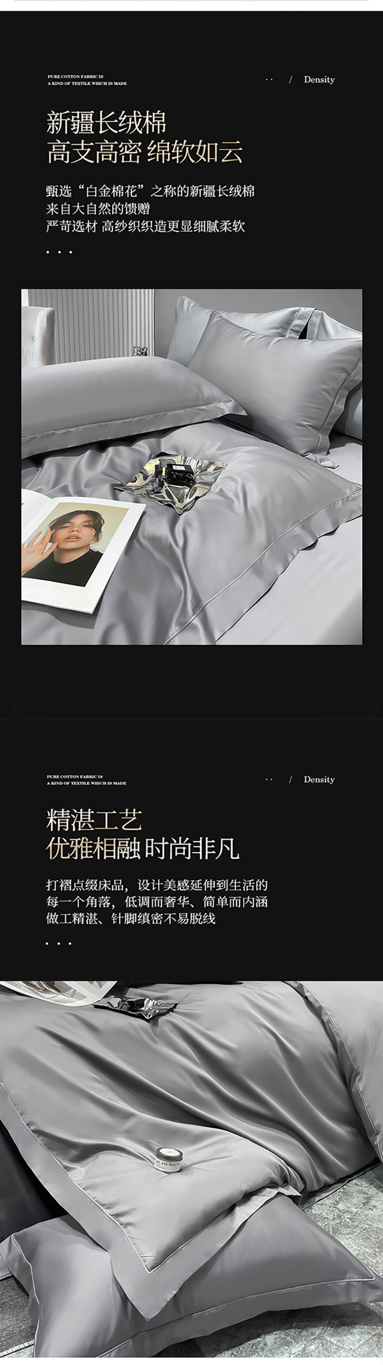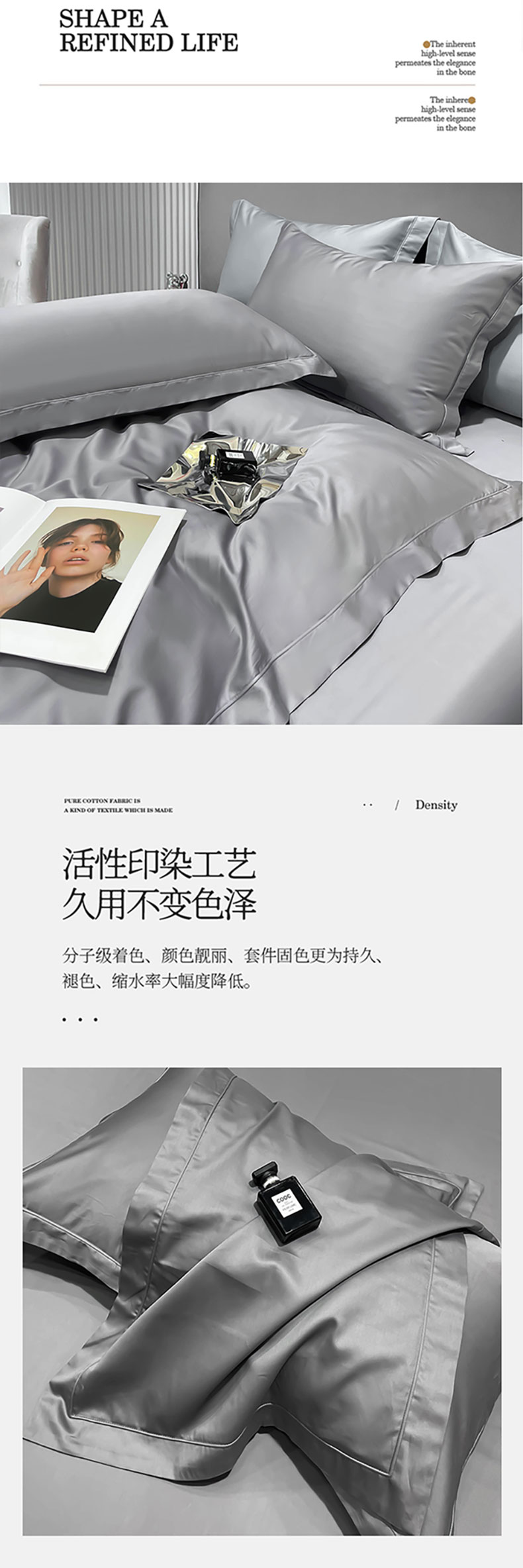 商品名称:洽想家 2025新款100支新疆长绒棉纯色埋绳款四件套 高级灰