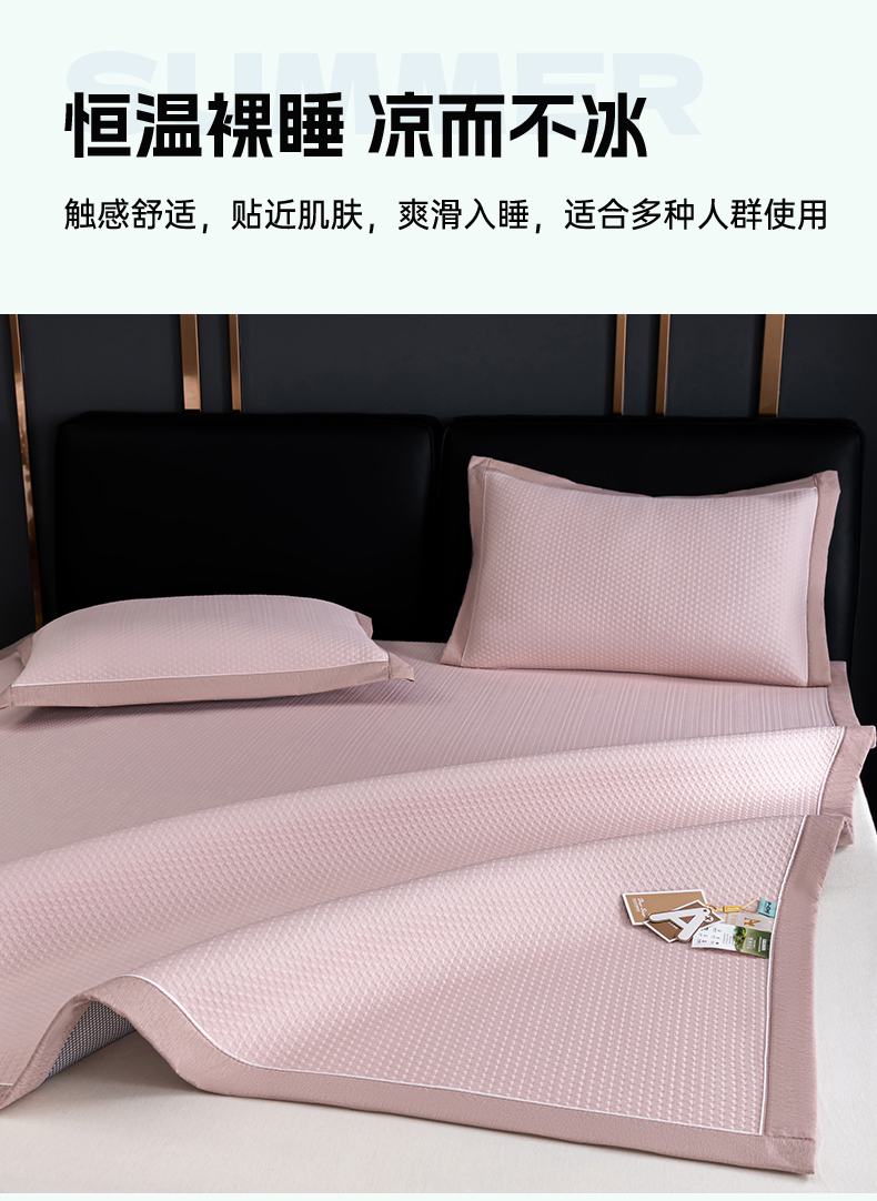 (总)2023新款超精密冰丝席-小斜纹系列-床笠款藤席凉席竹席,粉色,蓝色,绿色,银灰
