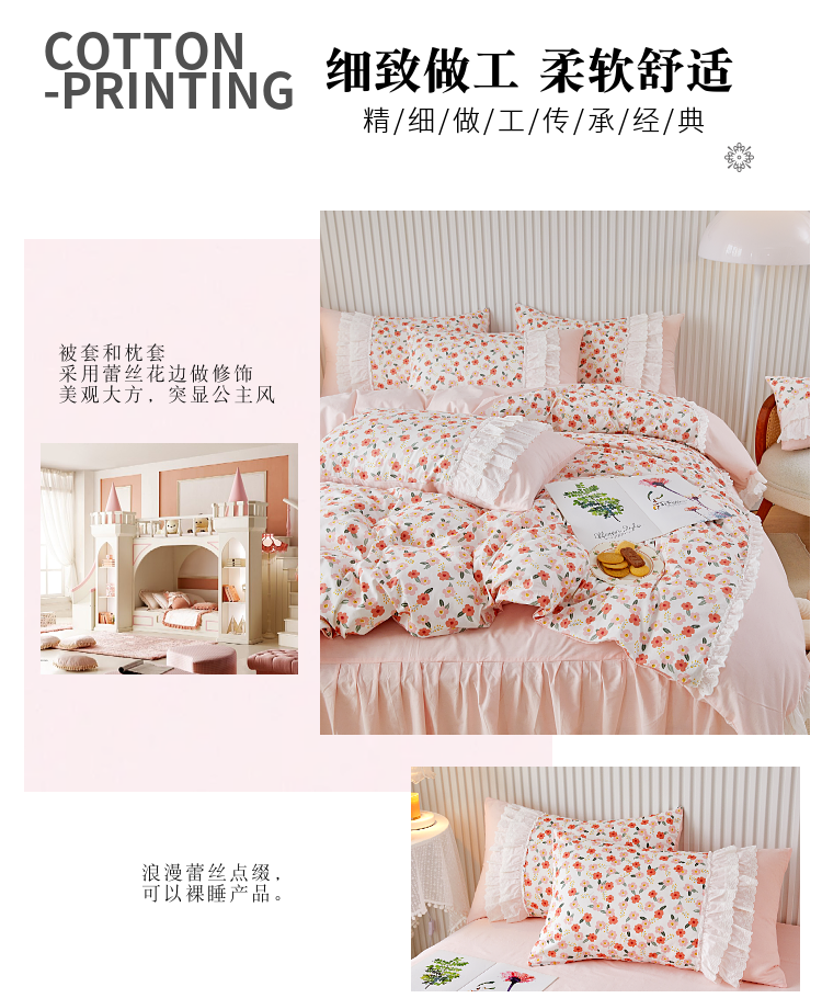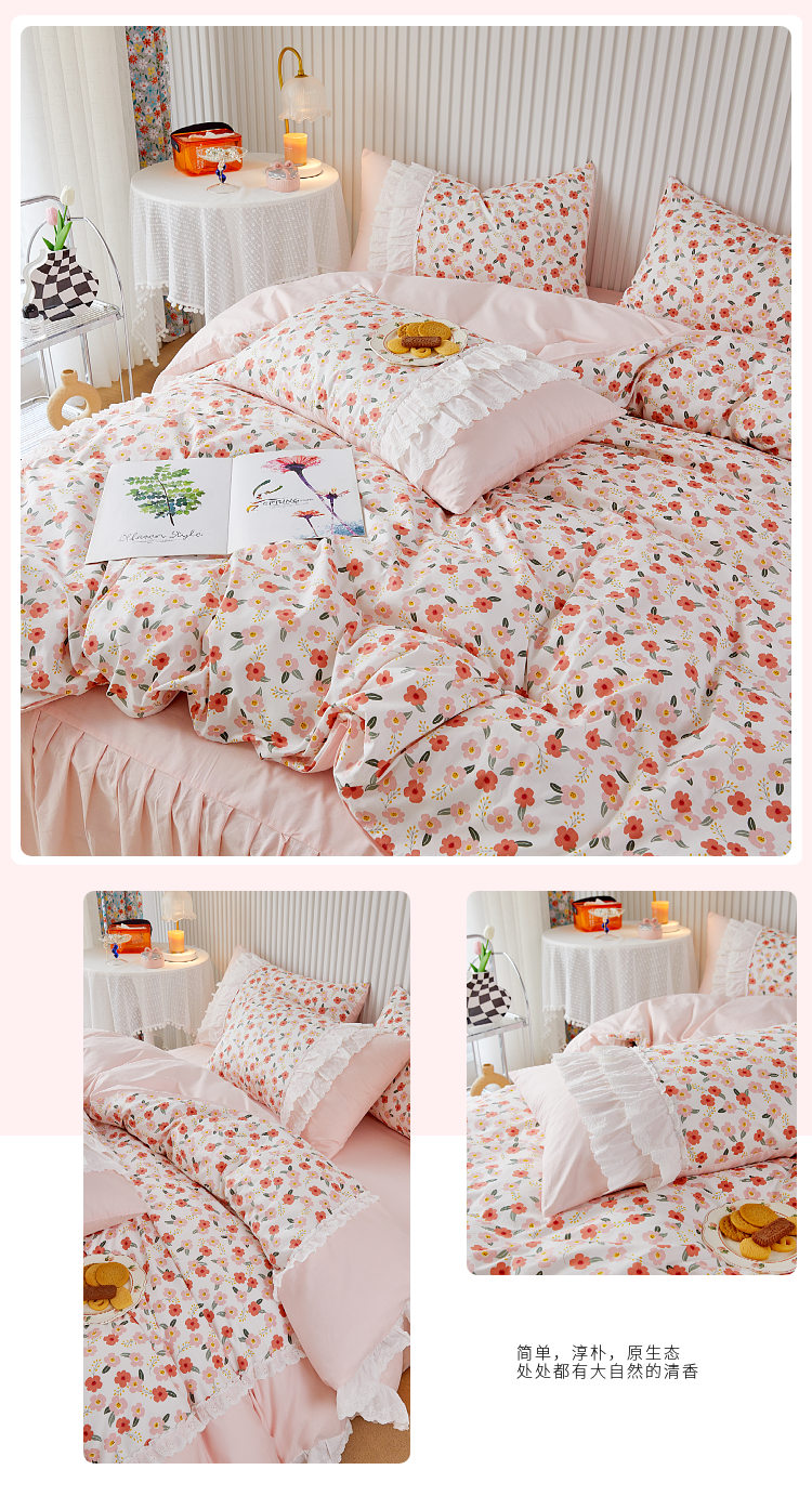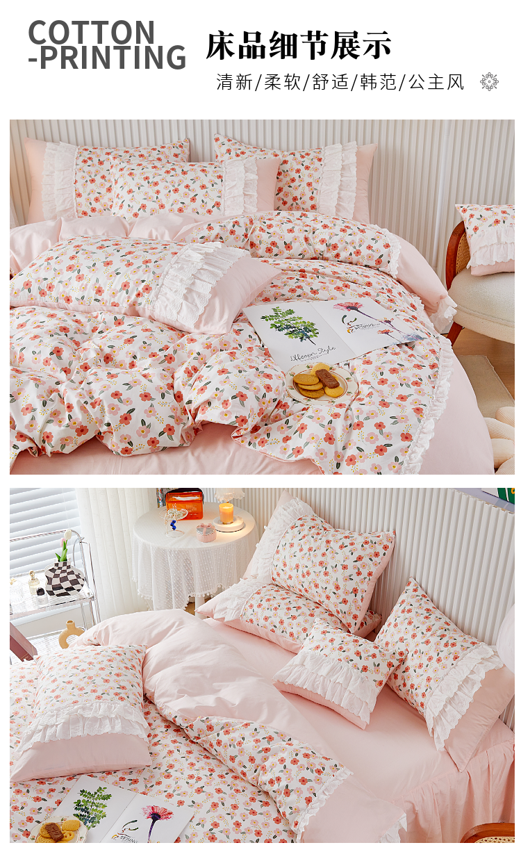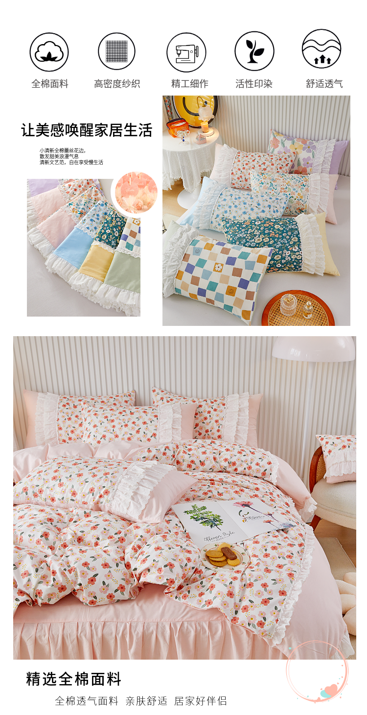 (总)亲亲公主 2025新款全棉法式宽花边四件套-浅浅爱,浅浅爱