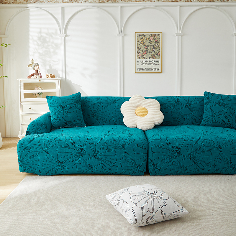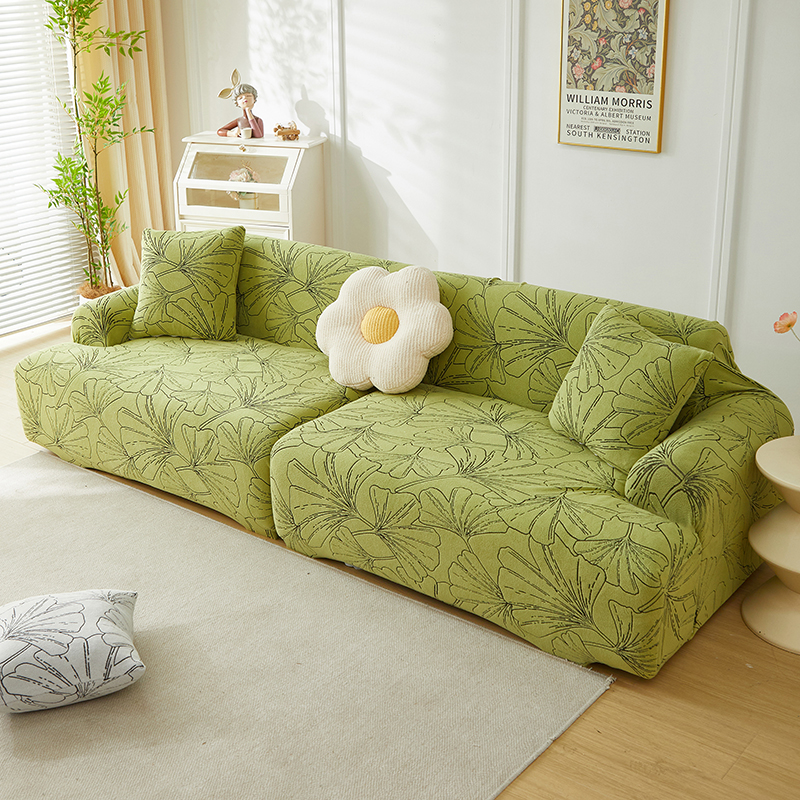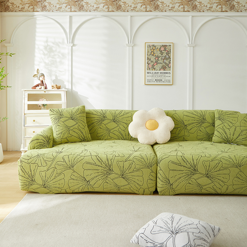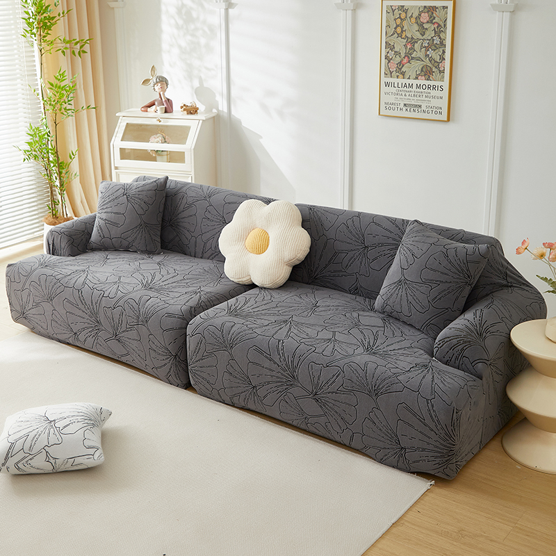 商品名称:丝绮鹿 2025新款银杏叶系列-沙发套松紧款(组合沙发图) 绅士灰