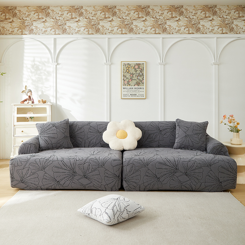 丝绮鹿 2025新款银杏叶系列-沙发套松紧款(组合沙发图) 绅士灰