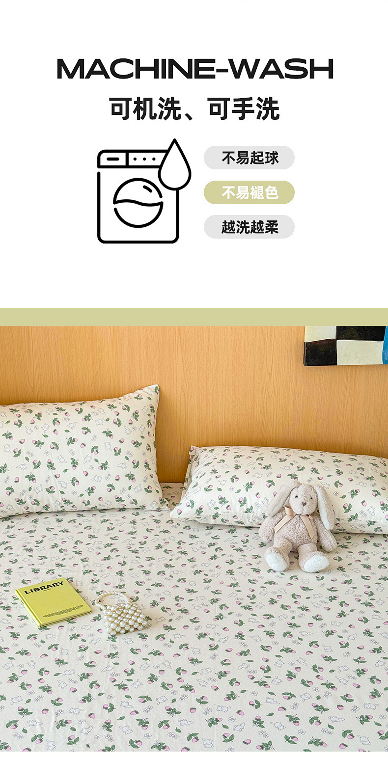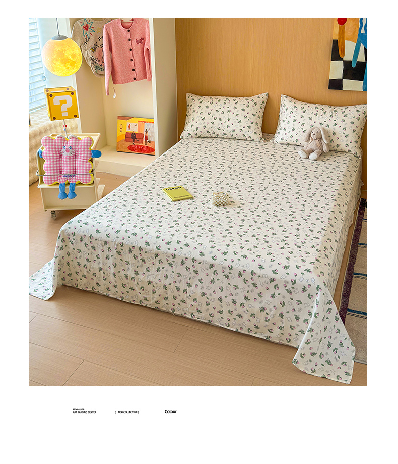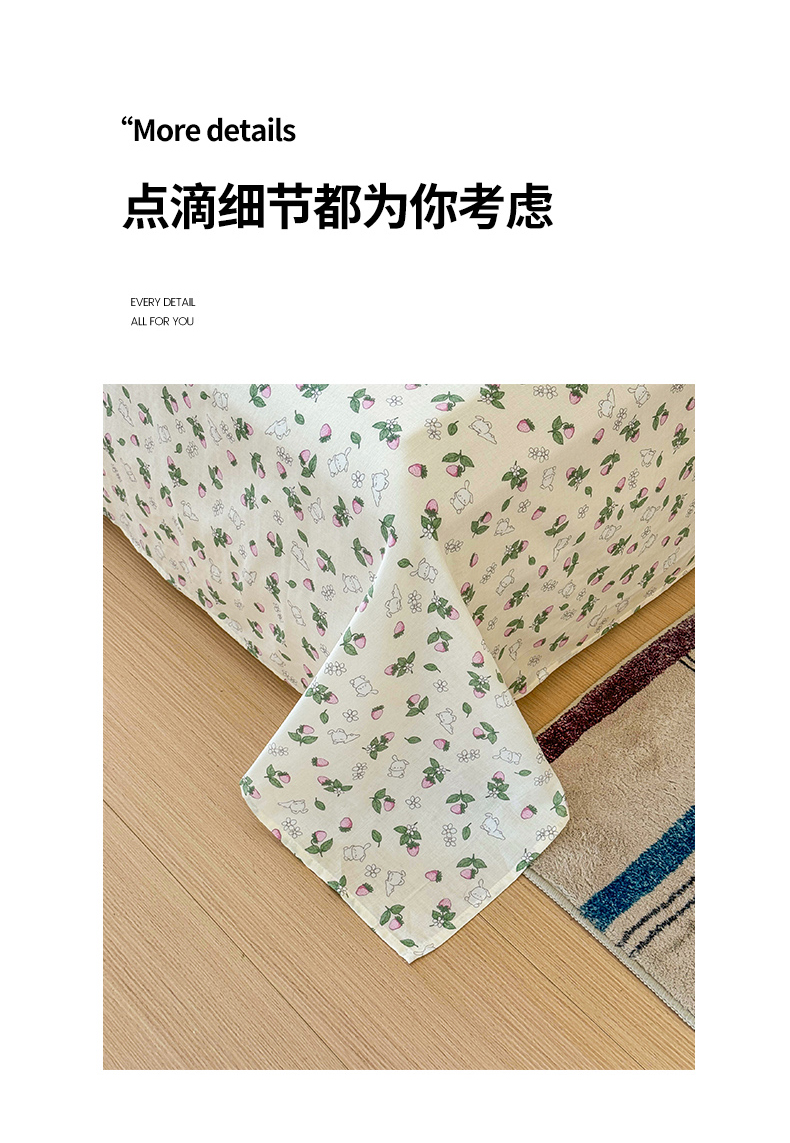 • 91家纺网 家纺一手货源 找家纺 2025新款全棉双层纱单品床单床笠枕套-单床单 草莓兔