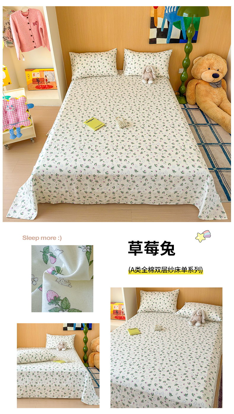 当前位置: 91家纺网 > 商品网购 > 床上用品 > 床单 > 2025新款全棉双层纱单品床单床笠枕套-单床单 草莓兔