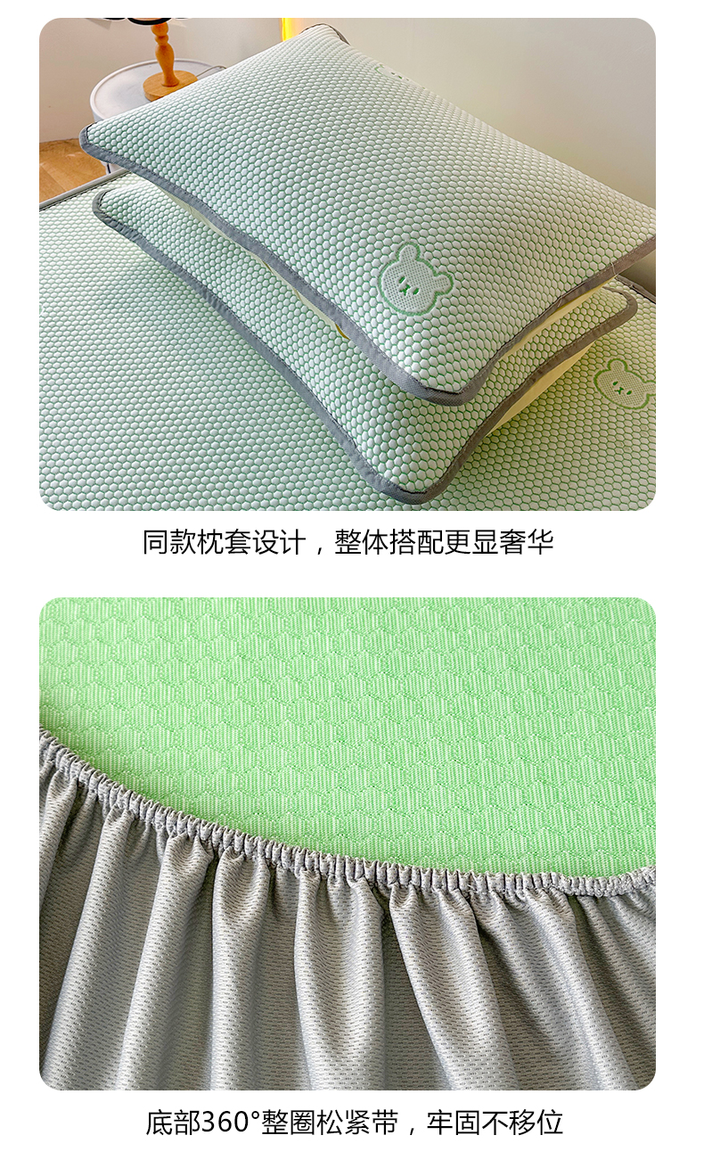 商品名称:爱洛家纺 2025春夏新款A类冰丝豆豆凉席席子-床笠款 床笠-水绿小熊