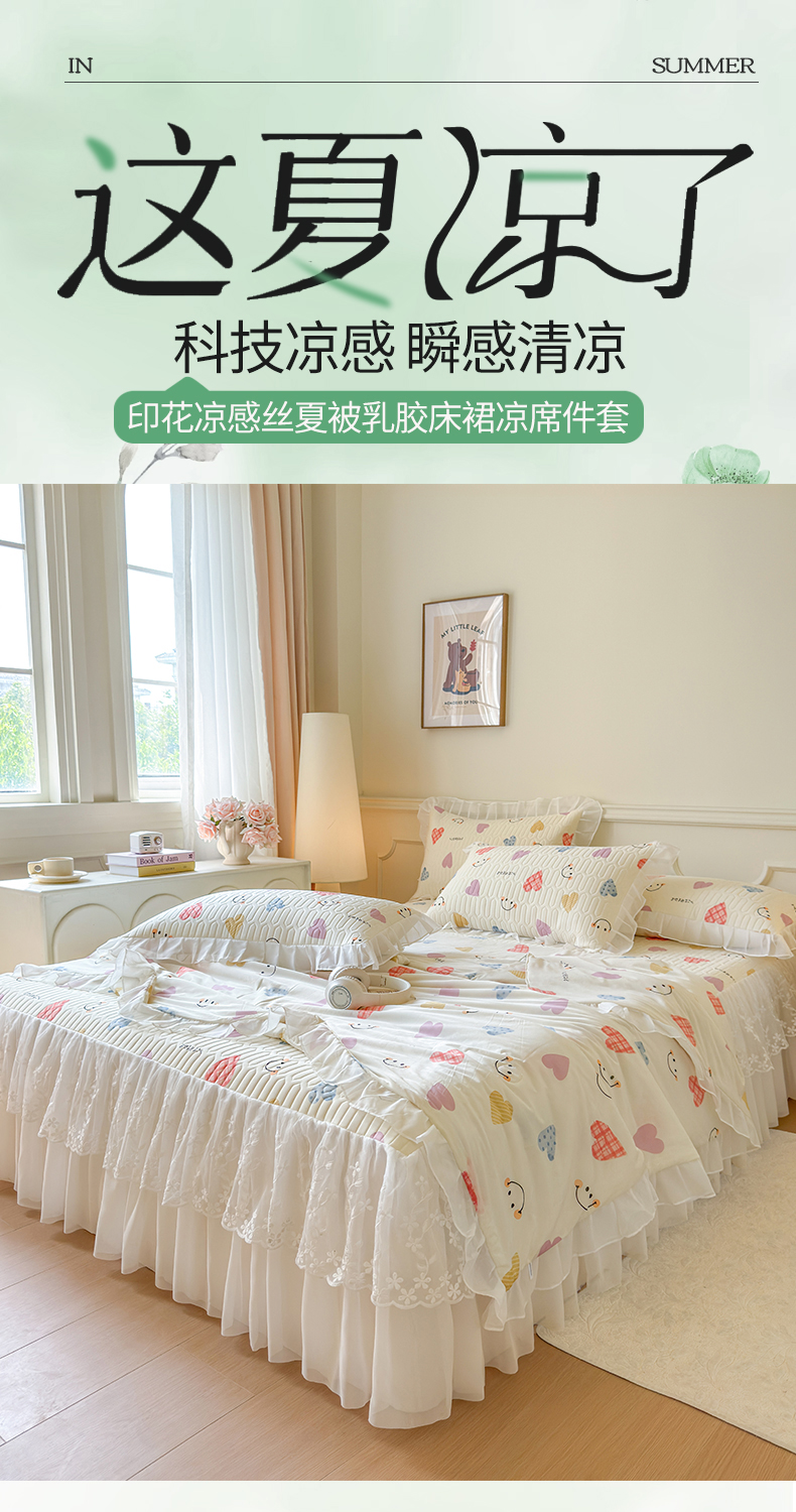 商品名称:(总)网红馆(ck家纺) 2025春夏新款印花凉感丝乳胶床裙凉席空调席夏被空调被