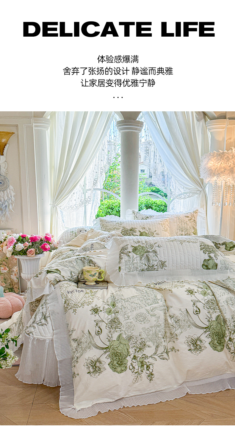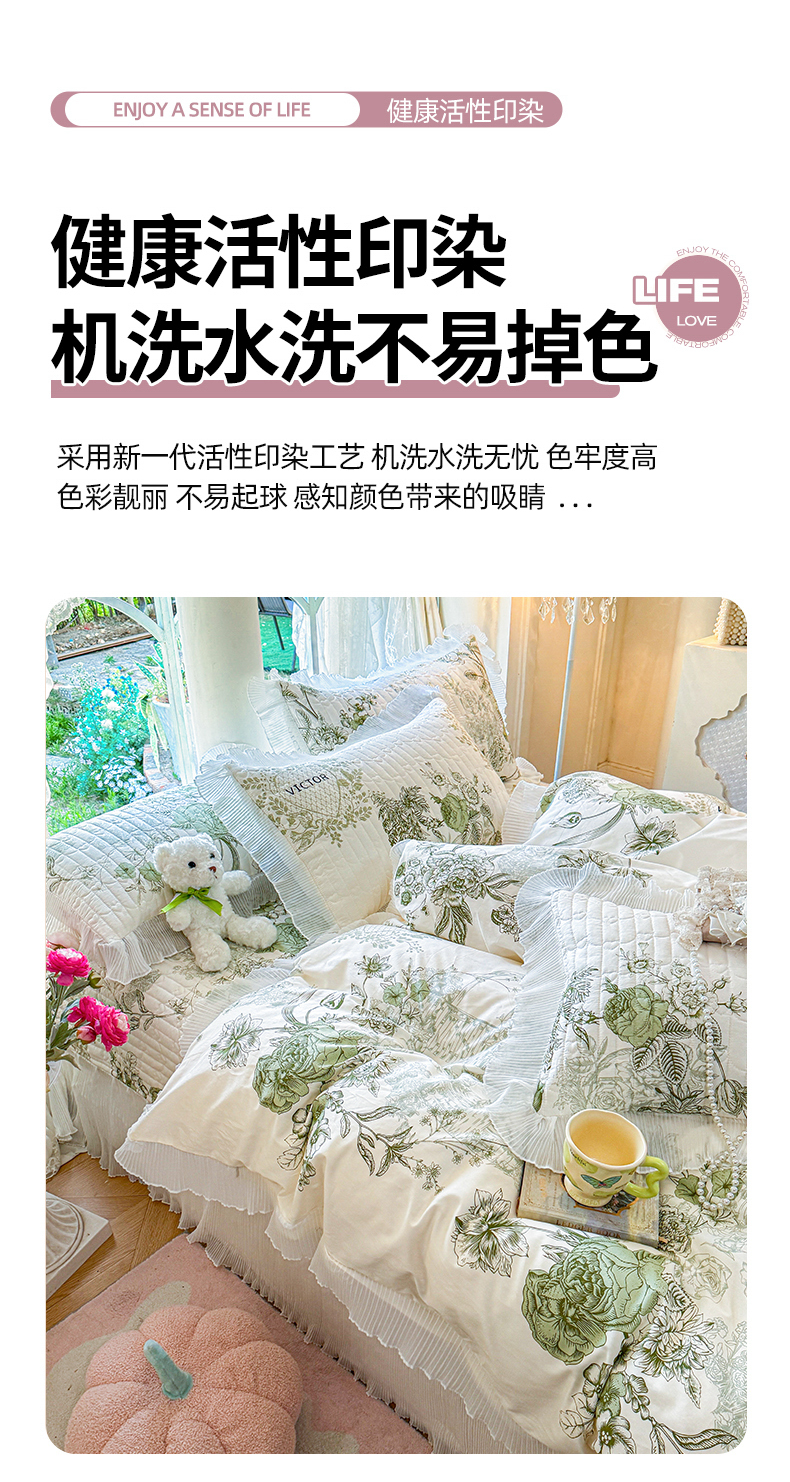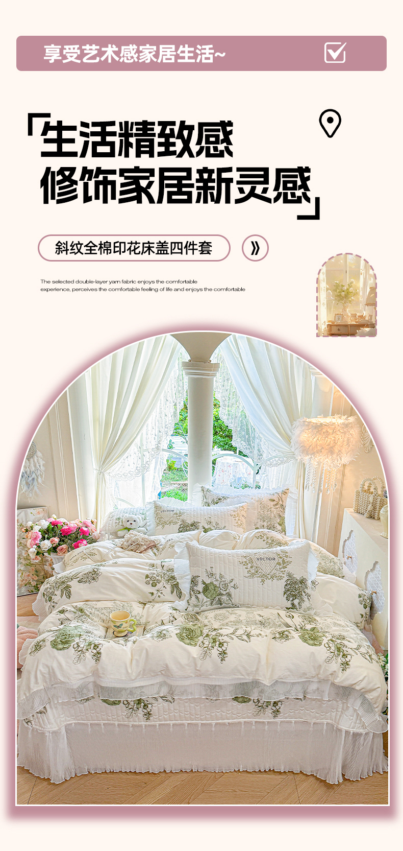 商品名称:虹星家纺 2025新款斜纹全棉纯棉印花床盖四件套-清甜 清甜-时光笔墨