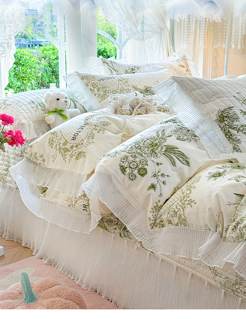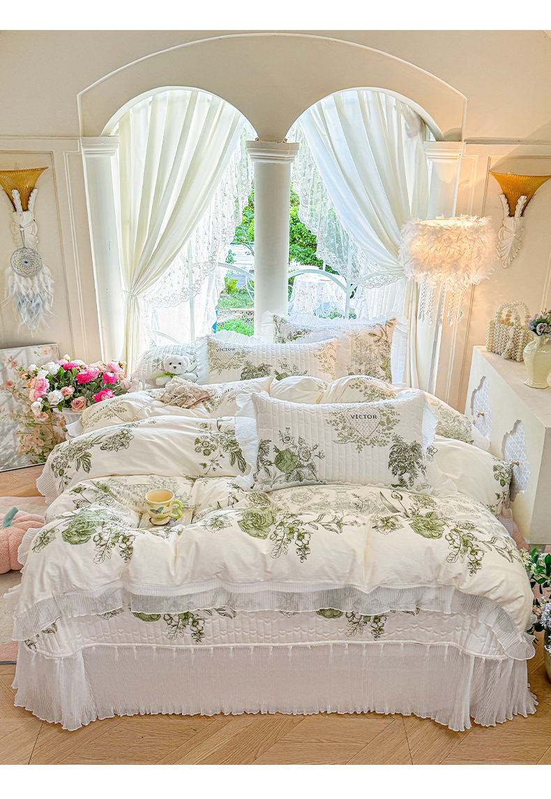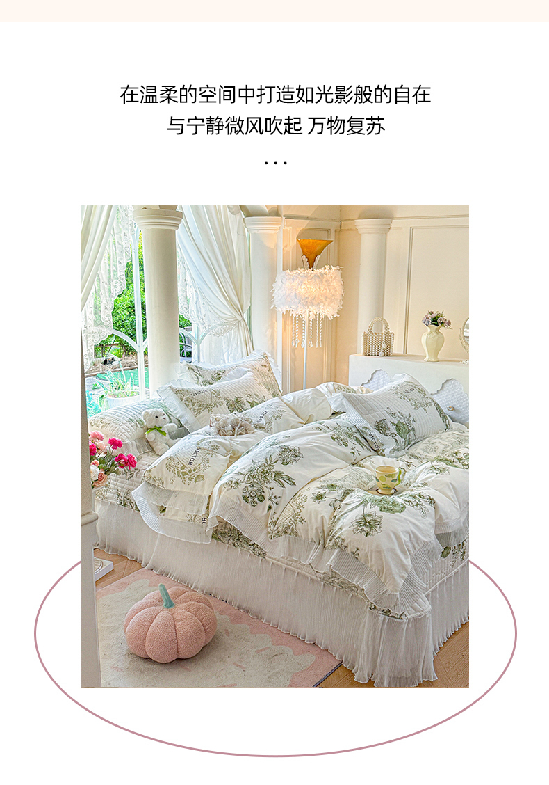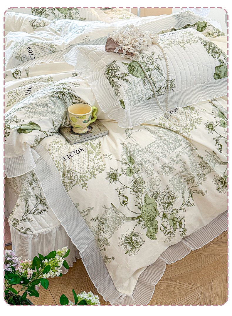 商品名称:虹星家纺 2025新款斜纹全棉纯棉印花床盖四件套-清甜 清甜-时光笔墨