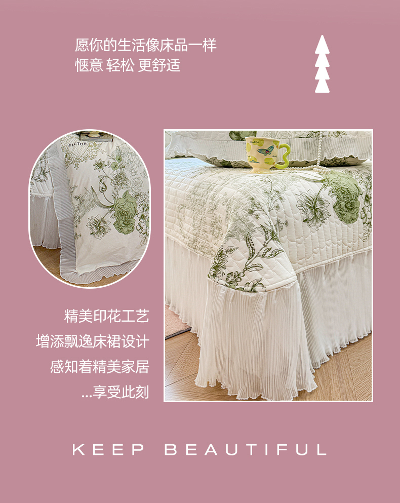 (总)虹星家纺 2025年新款全棉床盖三件套-花影倾梦,花影倾梦-浅米色,花影倾梦-薄荷绿,花影倾梦-天空蓝,花影倾梦-樱花粉,花影倾梦-优雅紫,花影倾梦-云朵白