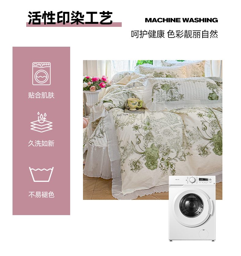 (总)虹星家纺 2024新款A类水洗棉四季款床裙系列套件-四件套,湖水绿,抹茶绿,时尚灰,天空蓝,香妃玉,香蕉黄,香芋紫,樱花粉,云朵白