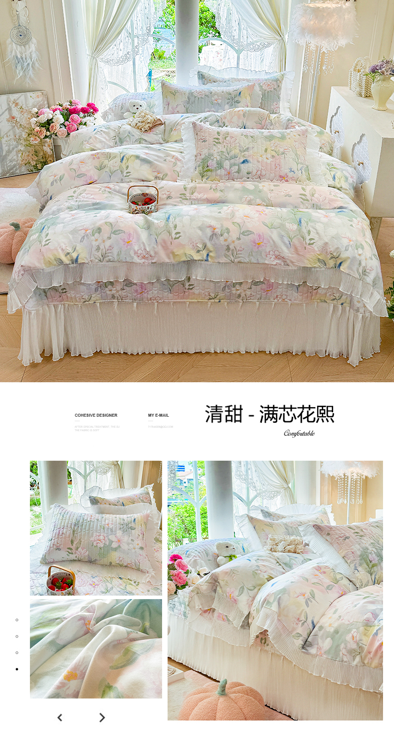 虹星家纺 2025新款斜纹全棉纯棉印花床盖四件套-清甜 清甜-时光笔墨