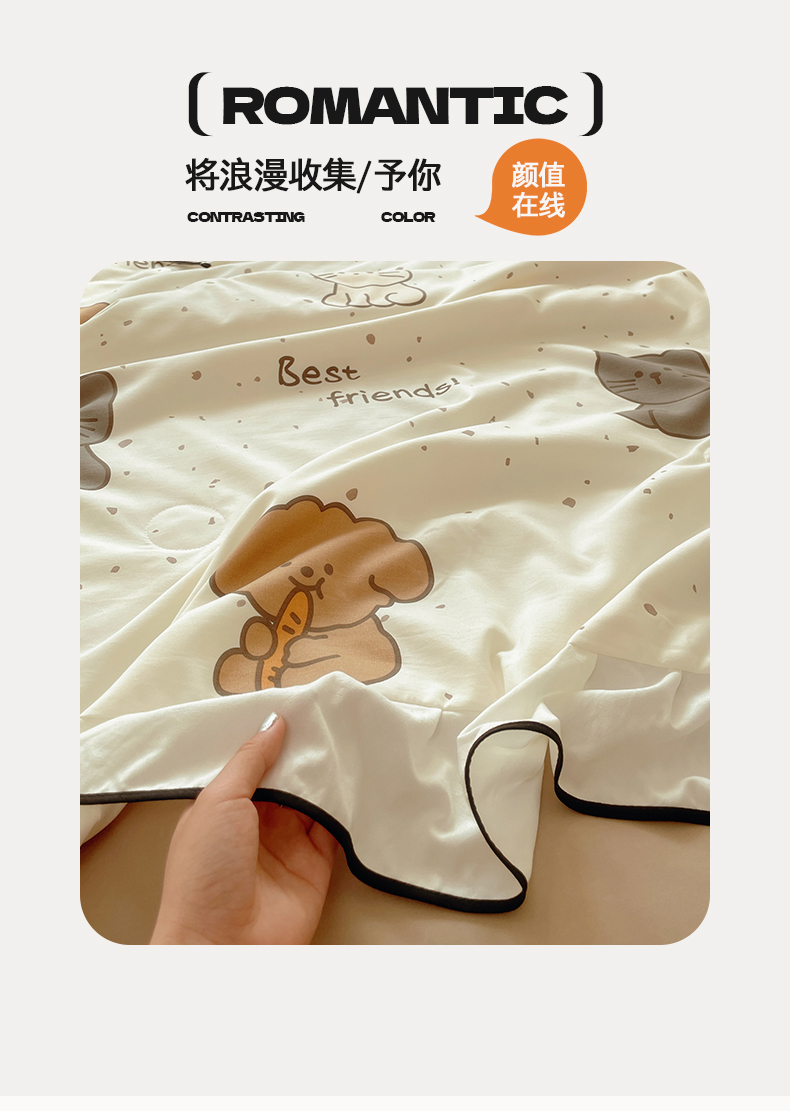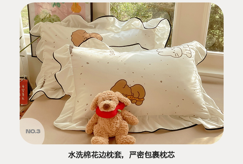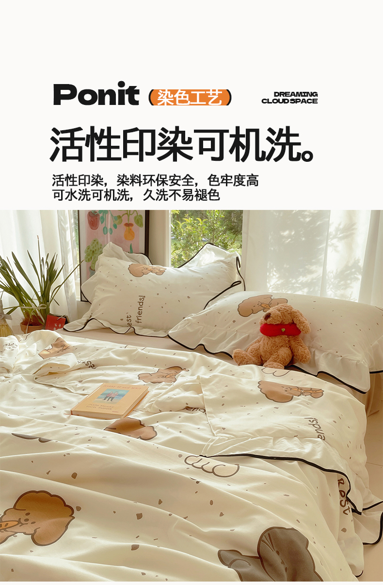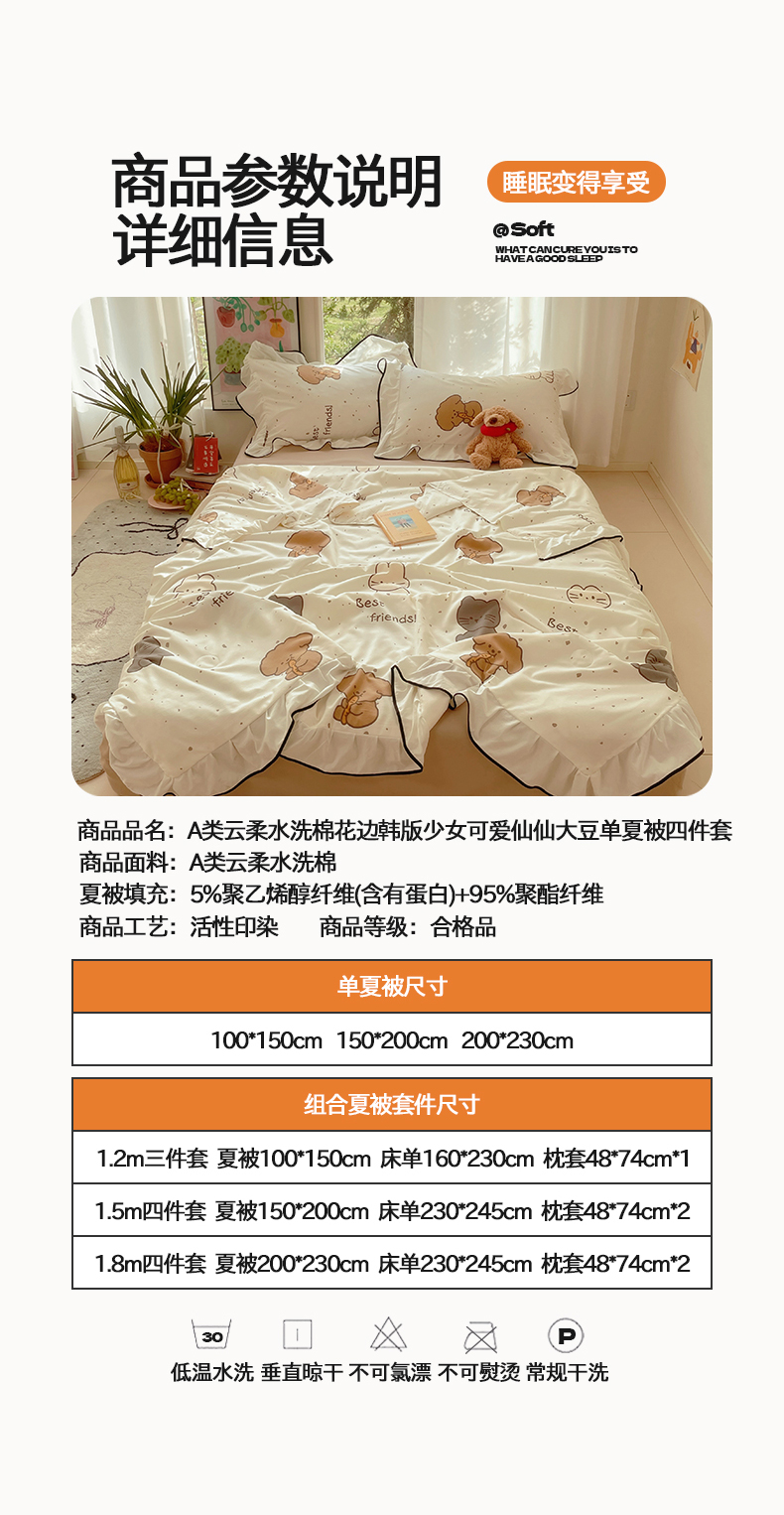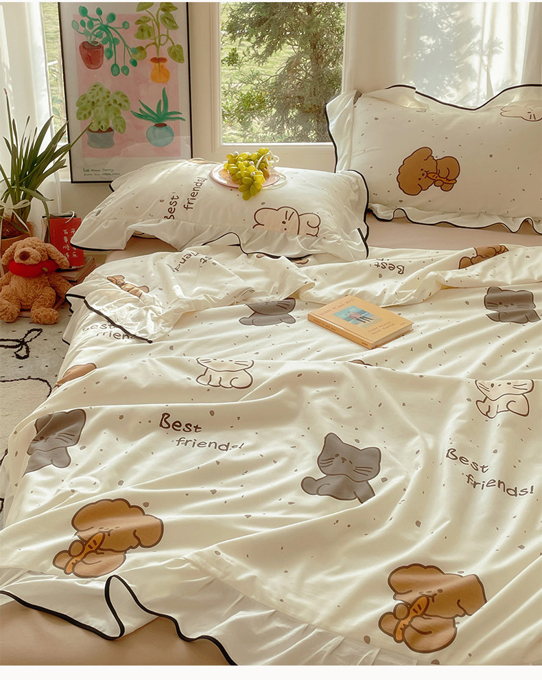 当前位置: 91家纺网 > 商品网购 > 床品套件 > 四件套 > 全棉普通四件套 > 桃心家居 2025新款A类云柔水洗棉花边韩版少女可爱仙仙大豆单夏被夏凉被空调被四件套 水洗棉花边-夏被萌萌乐园