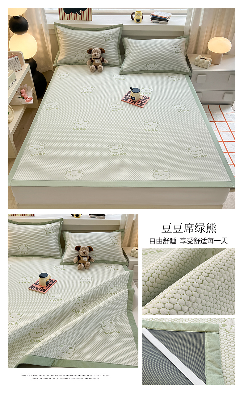 商品名称:857家居 2025新款提花冰豆豆凉席三件套 豆豆席绿熊
