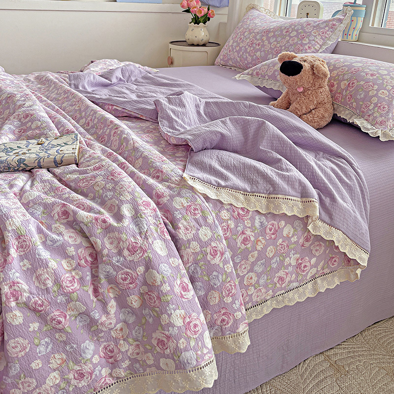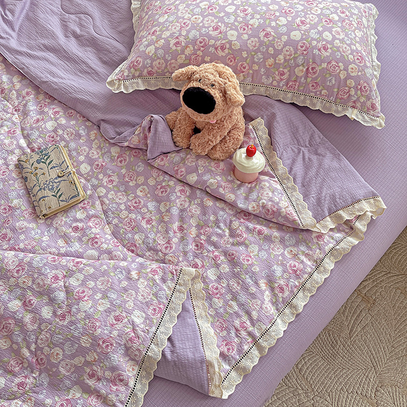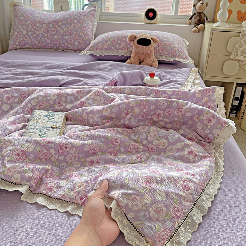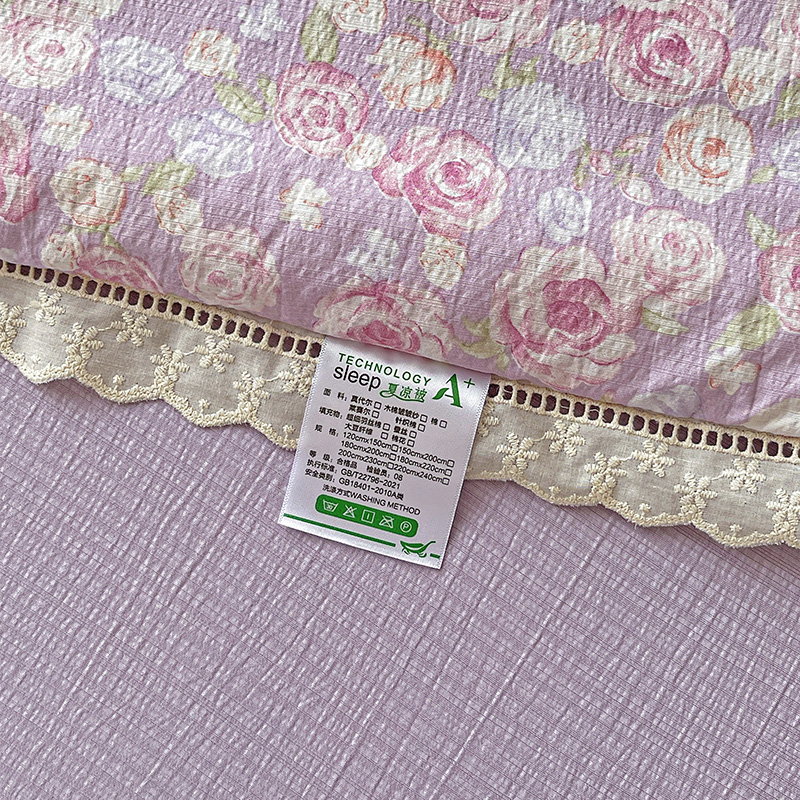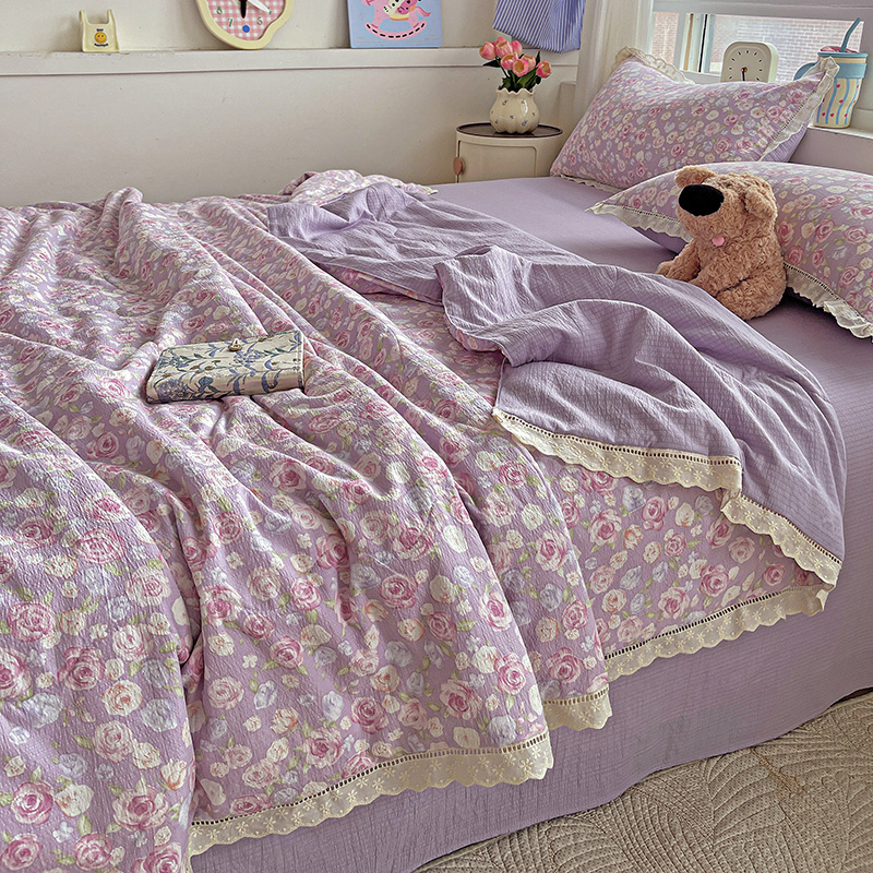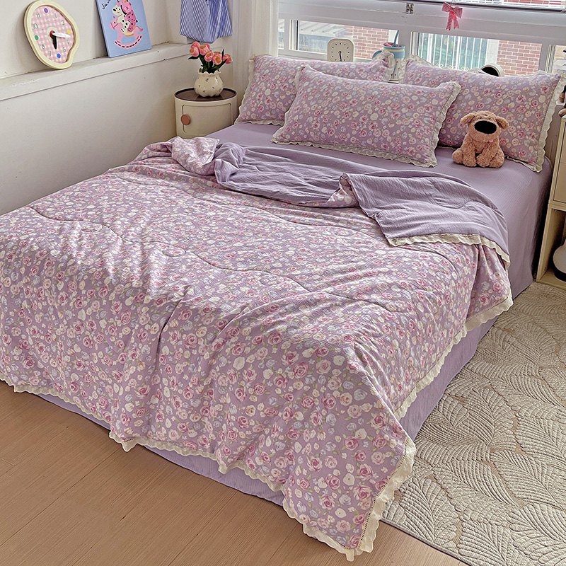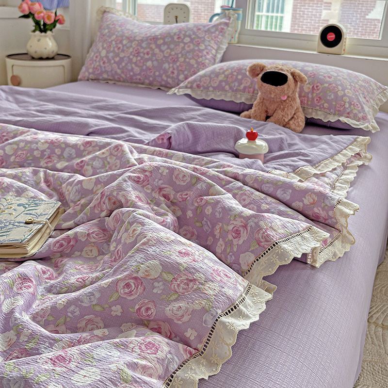 当前位置: 91家纺网 > 商品网购 > 床品套件 > 四件套 > 夏被四件套 > 一比一家纺 2025新款云感皱皱纱全棉花边款夏被四件套【控价109元】十里桃花紫