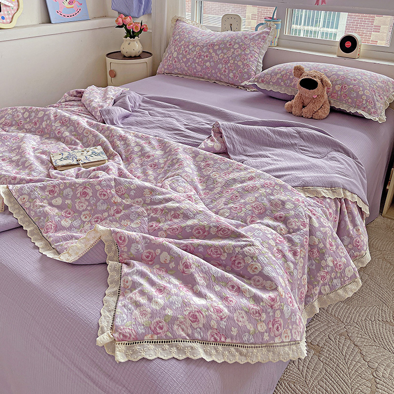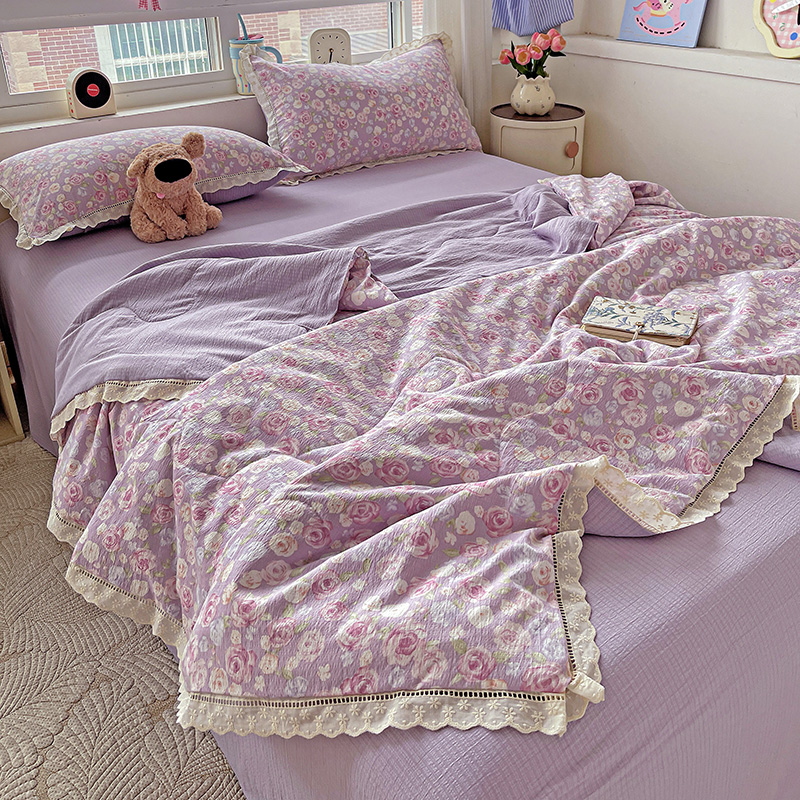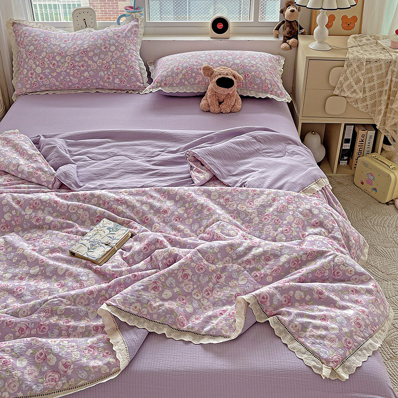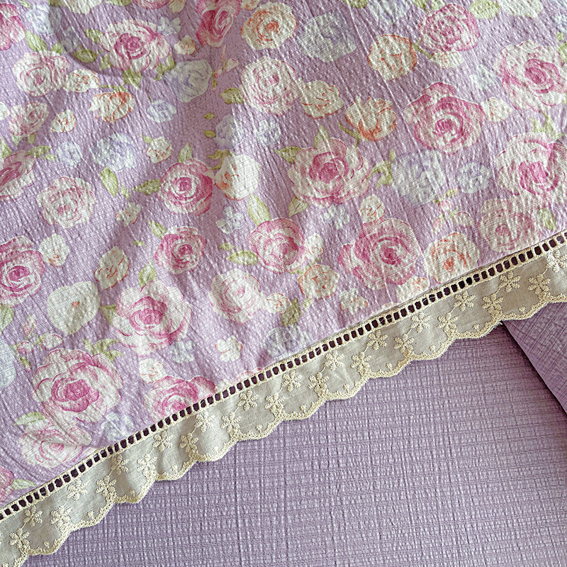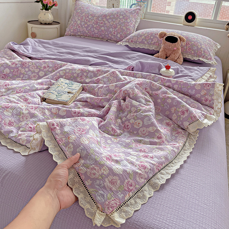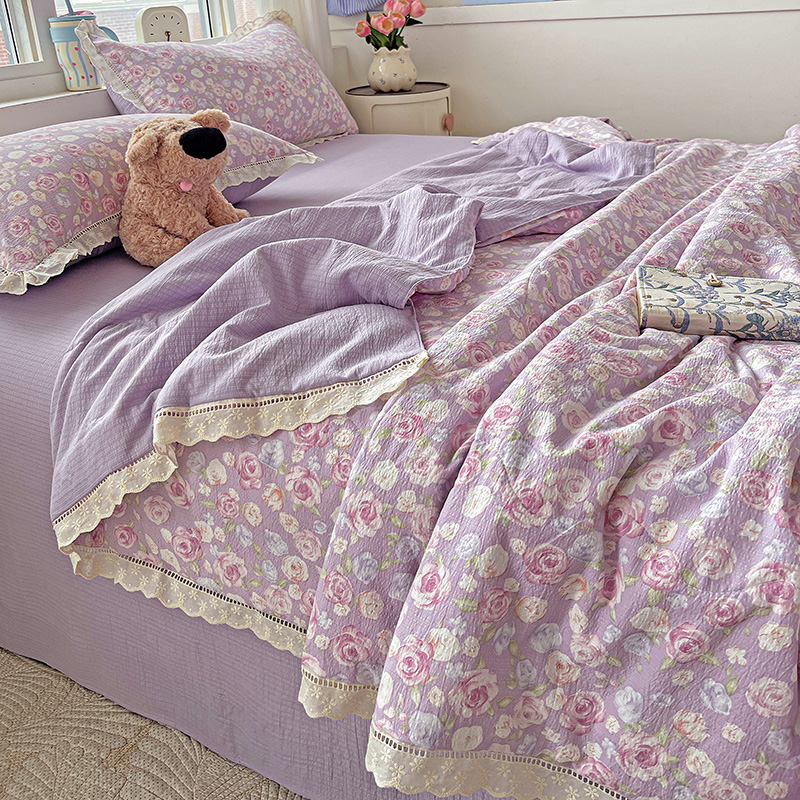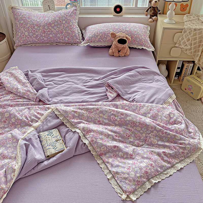 当前位置: 91家纺网 > 商品网购 > 床品套件 > 四件套 > 夏被四件套 > 一比一家纺 2025新款云感皱皱纱全棉花边款夏被四件套【控价109元】十里桃花紫