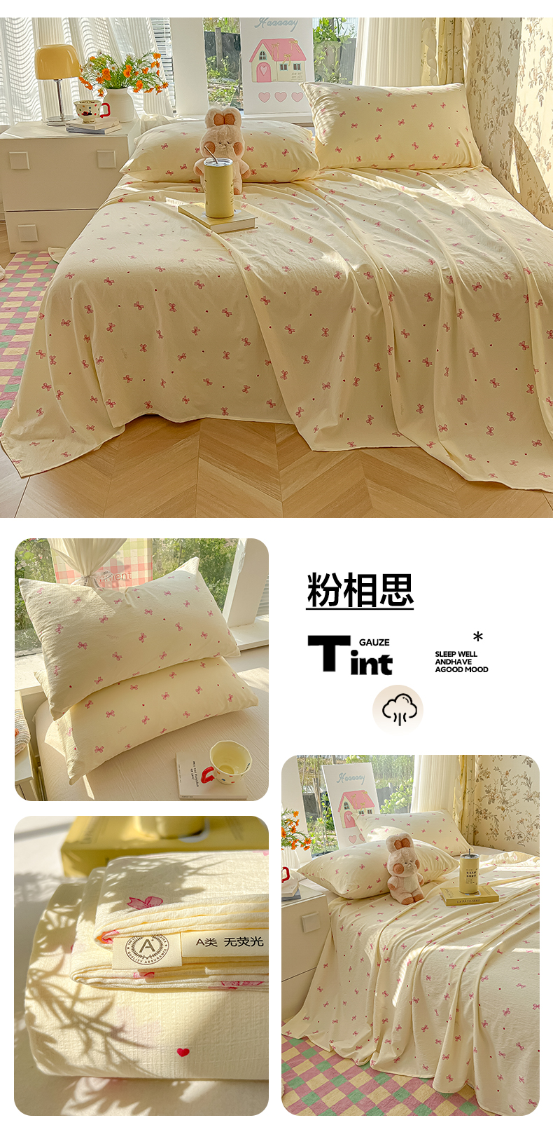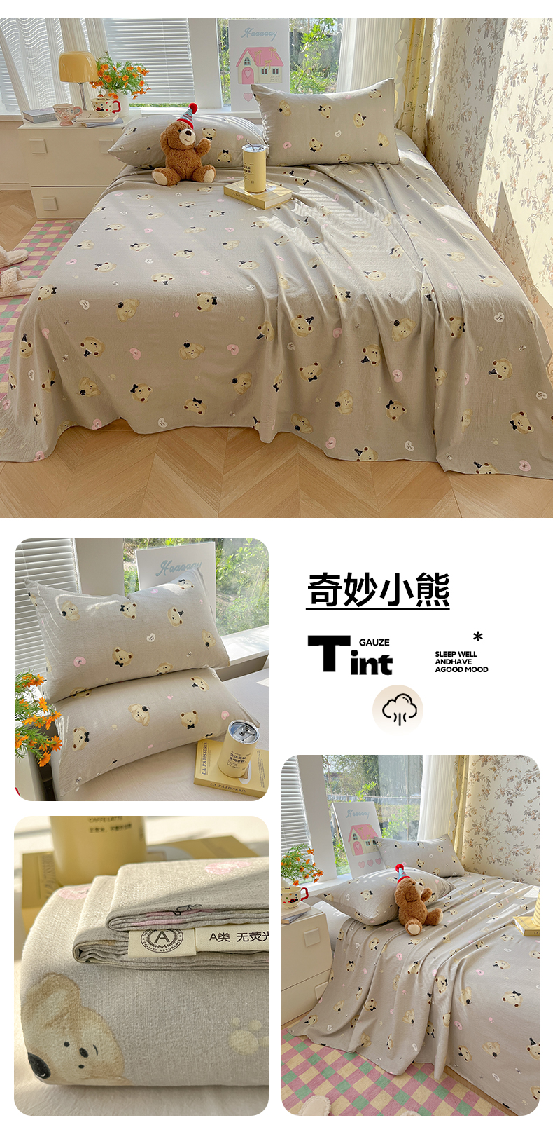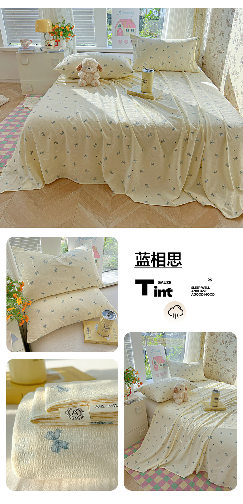 (总)韩巢家纺 2026新款花边款针织双层纱四件套,爱心,彩色蝴蝶结,春和豆沙,春和米,春意花开,叮当熊,花田薇,可爱多兰,可爱熊,敏敏灰,魔法森林,木昔,奶油波点米,奶油狗,巧克力,塞林娜绿,塞林娜米黄,问秋黄,问秋棕,熊先生,悠然紫,云山沐晚