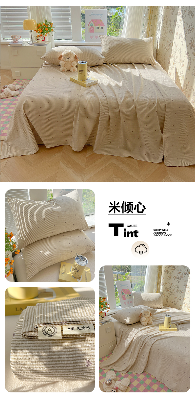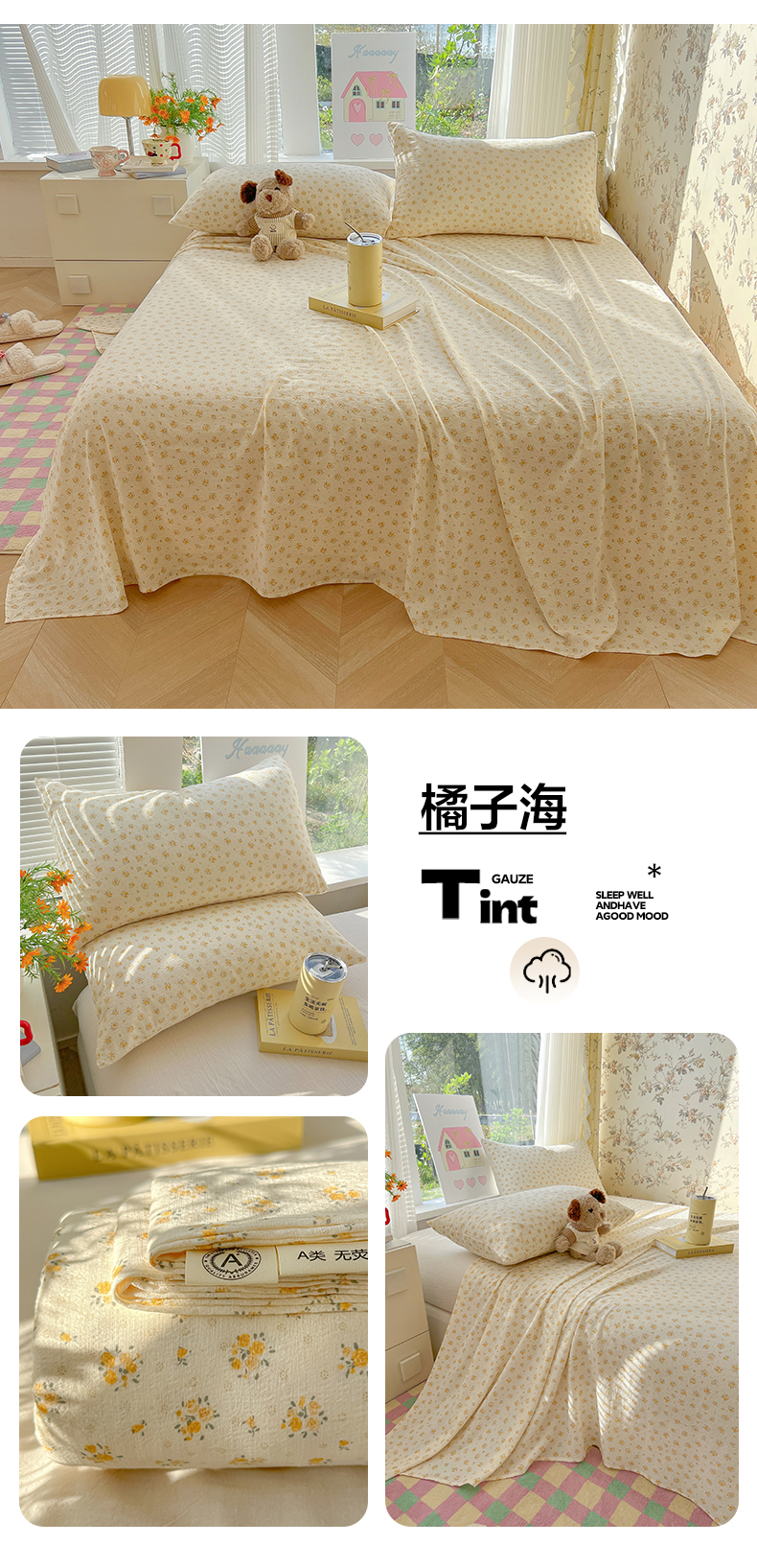 (总)韩巢家纺 2025新款云感提花双层纱床单被单枕套三件套