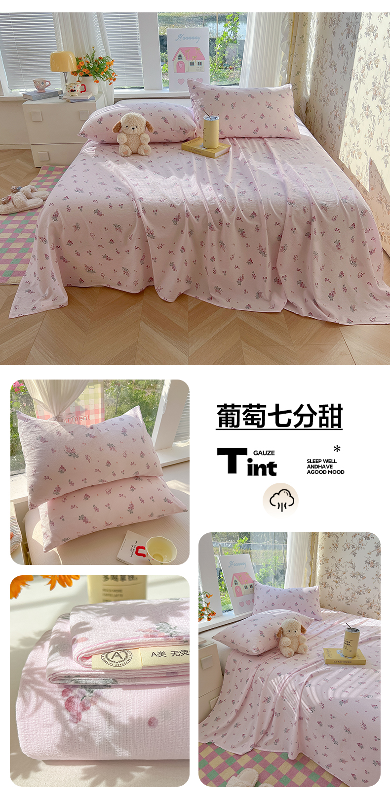 商品名称:(总)韩巢家纺 2025新款云感提花双层纱床单被单枕套三件套