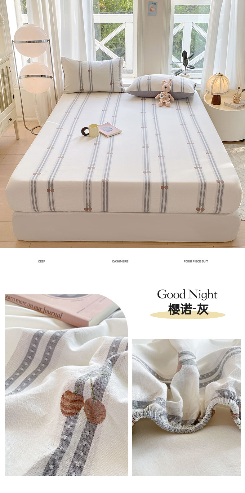 灰鲸 2025新款A类全棉色织提花床单床笠 樱诺-灰