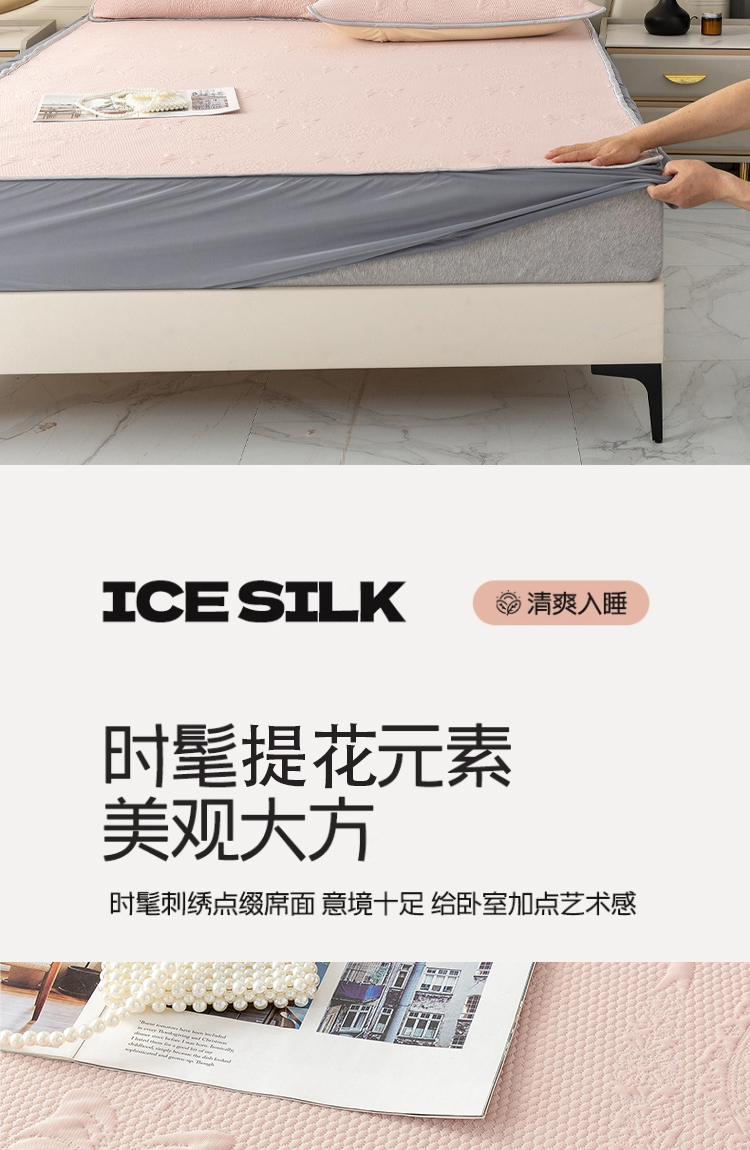 • 91家纺网 家纺一手货源 找家纺 乐居家纺 2025新款中分子PE凉感凉豆豆提花凉席床笠款 玉蝴蝶结