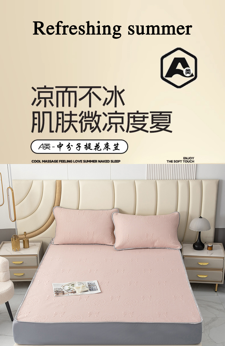 乐居家纺 2025新款中分子PE凉感凉豆豆提花凉席床笠款 玉蝴蝶结