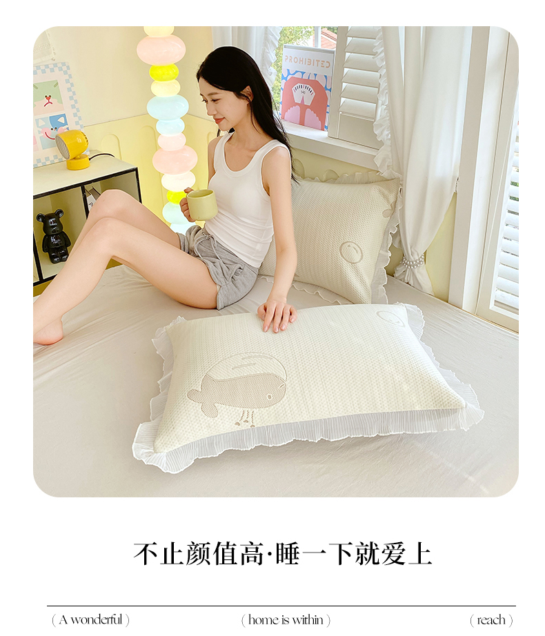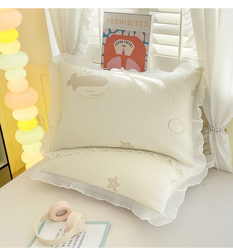 商品名称:芯宜佳 2025年新款冰豆豆花边单人枕套 小鲸鱼-浅咖