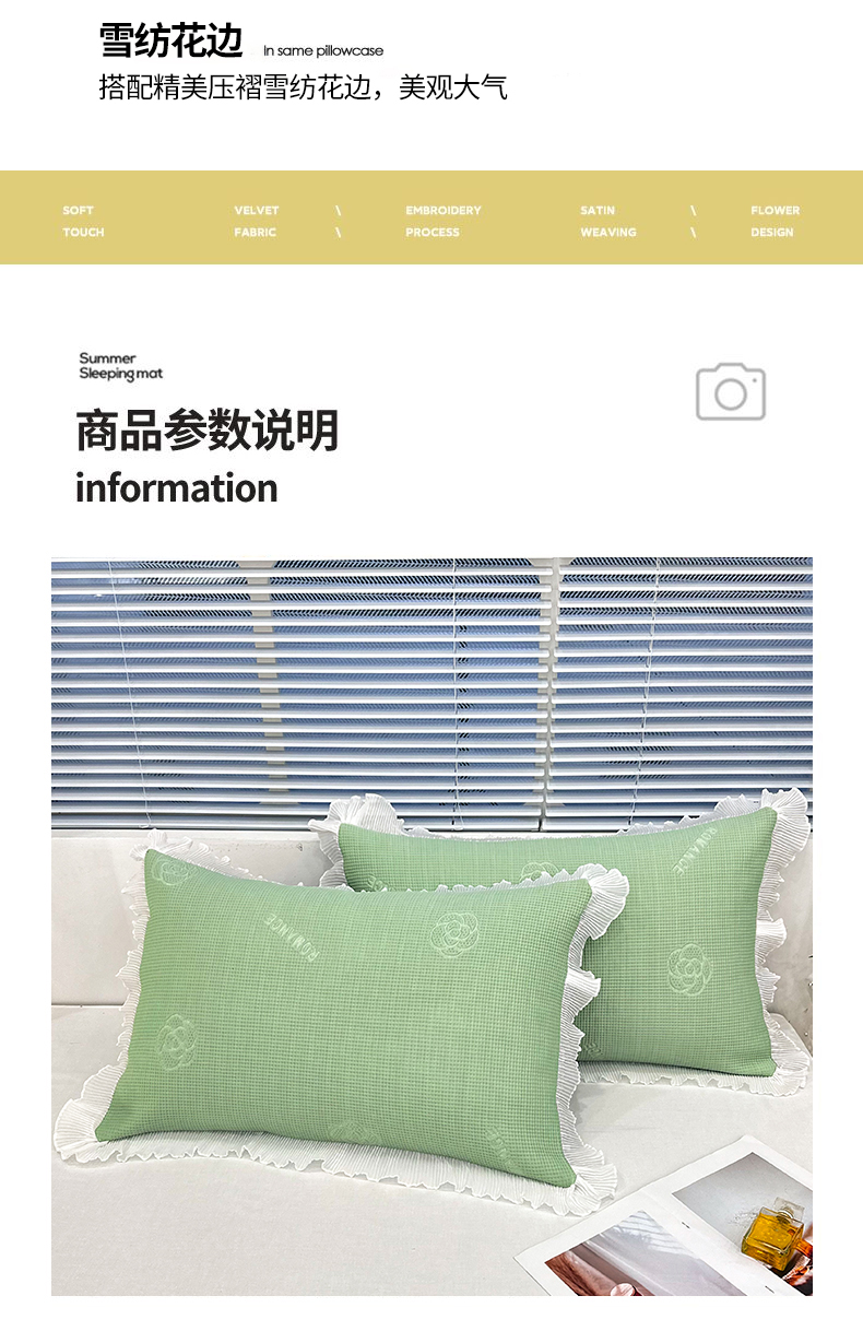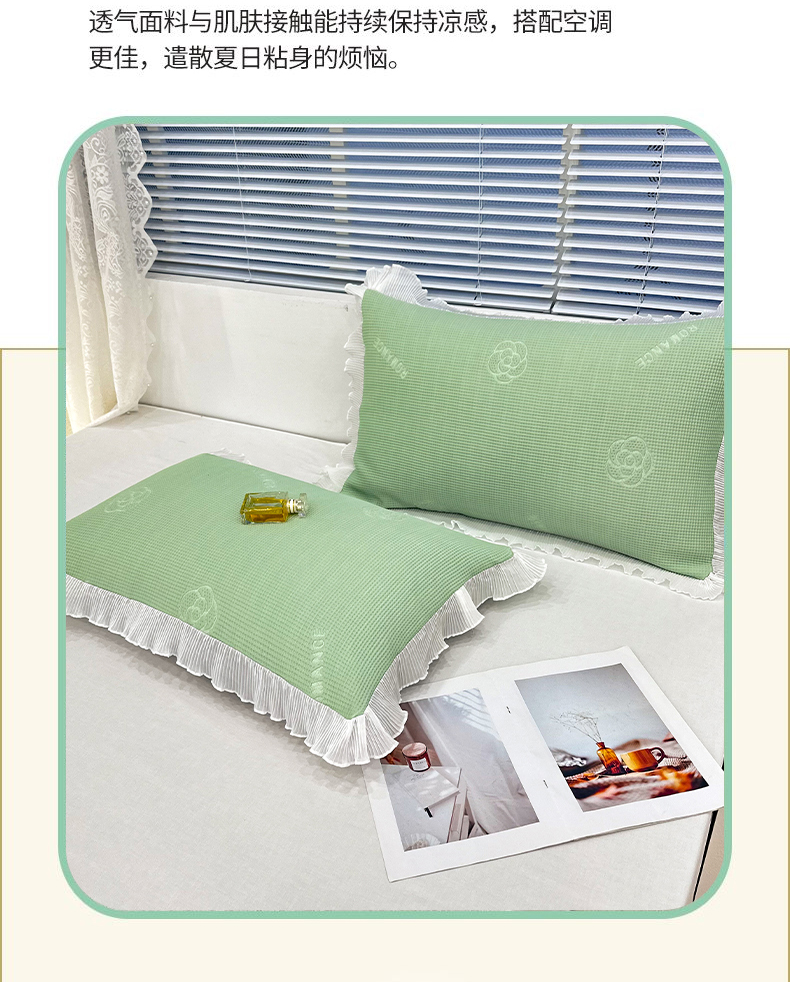 商品名称:芯宜佳 2025年新款冰豆豆花边单人枕套 山茶花-绿