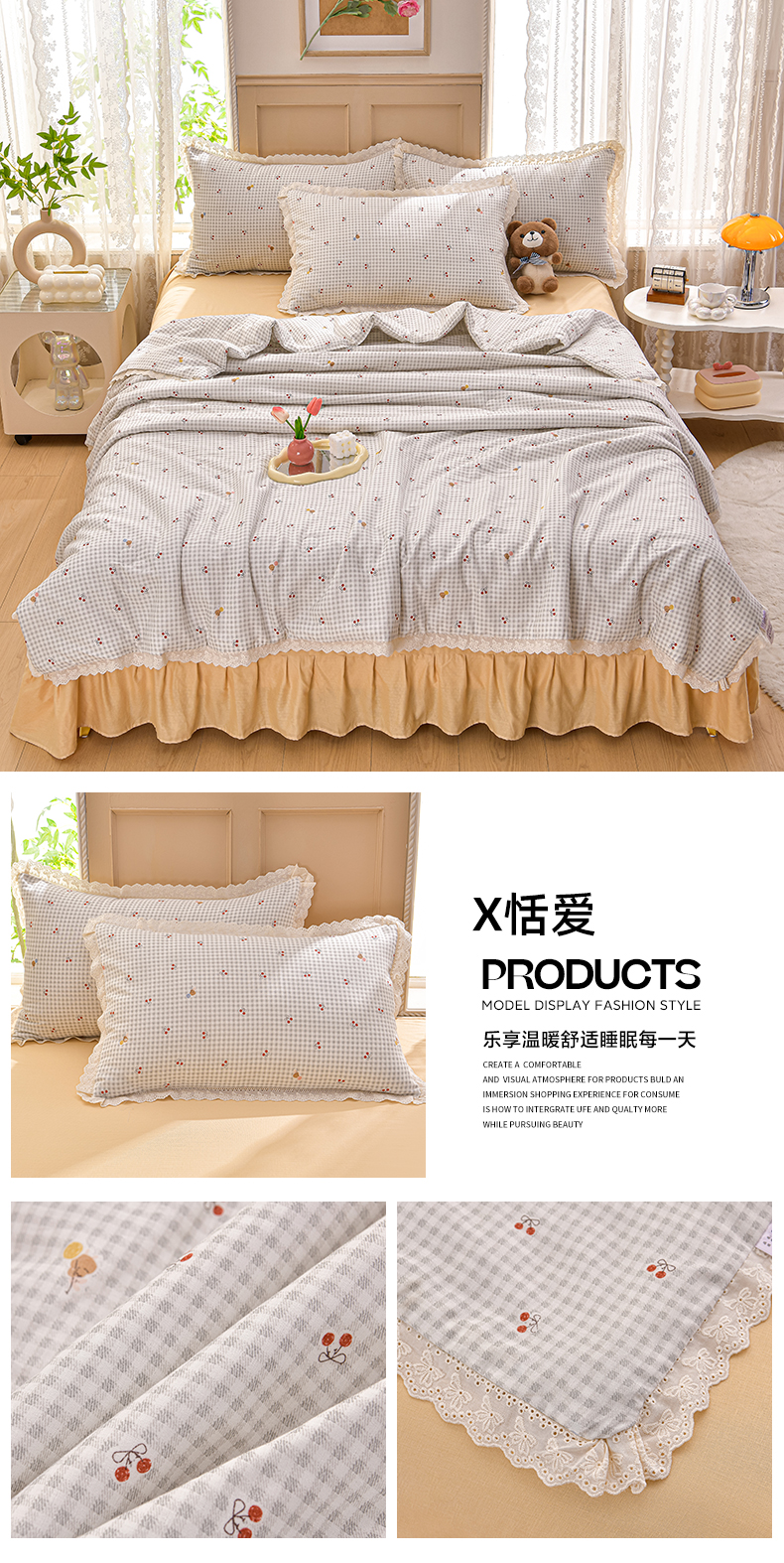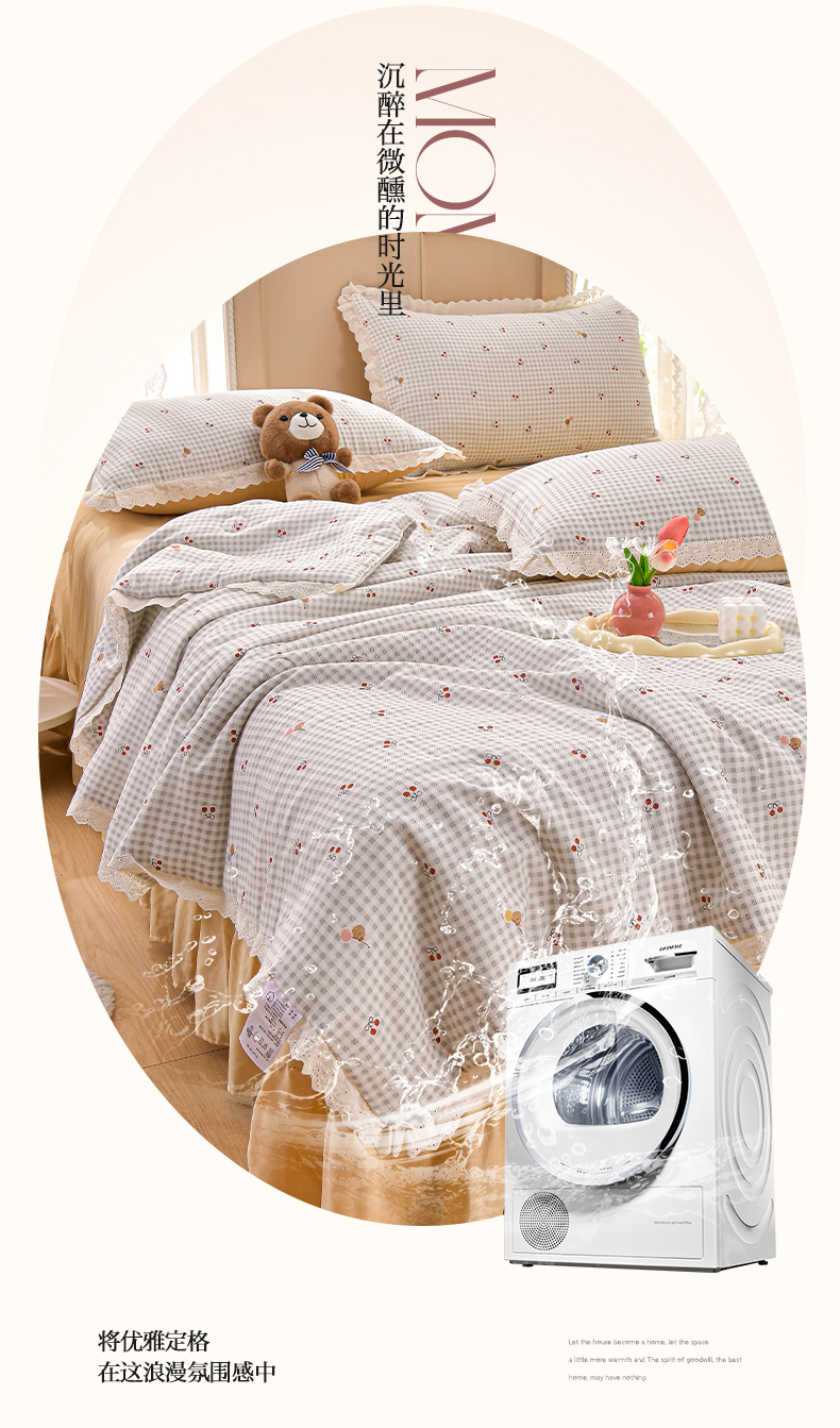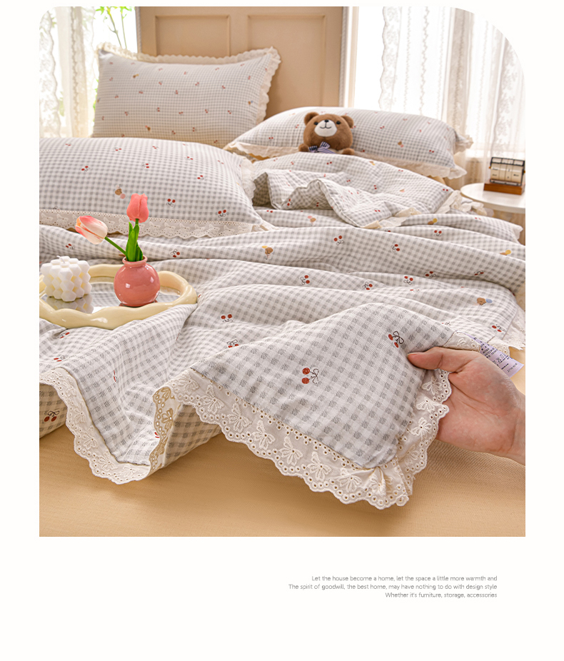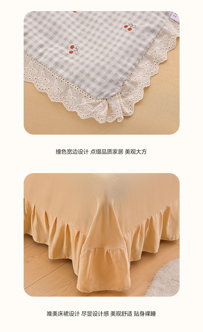 商品名称:绘萱家居 2025新款100%全棉双层纱花边床裙款夏被四件套