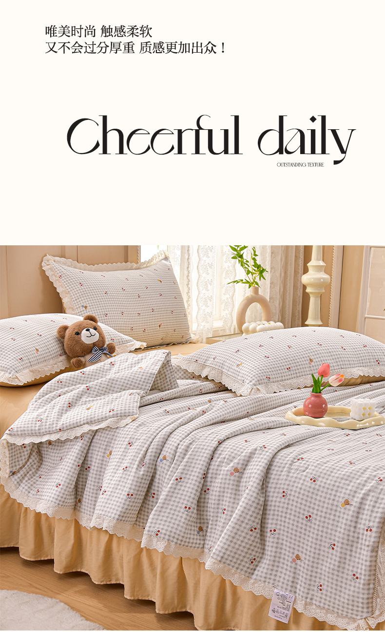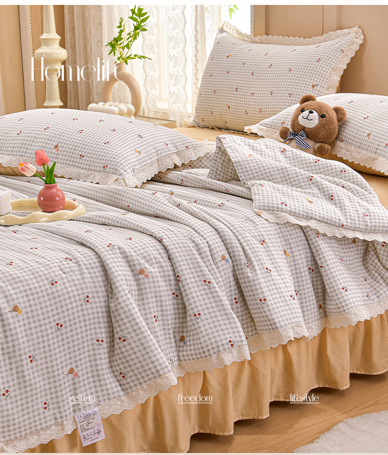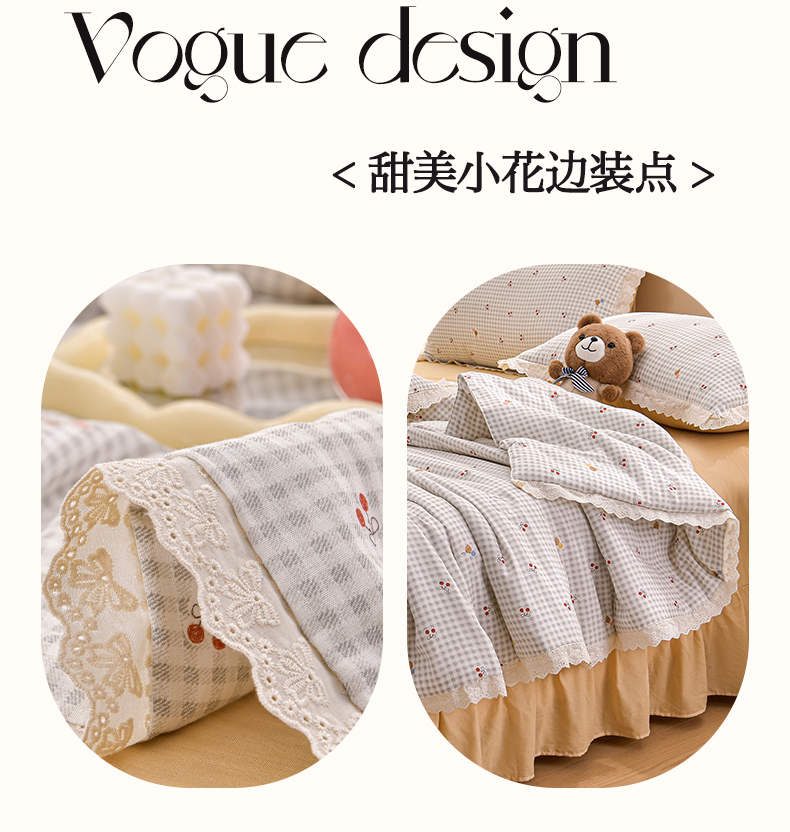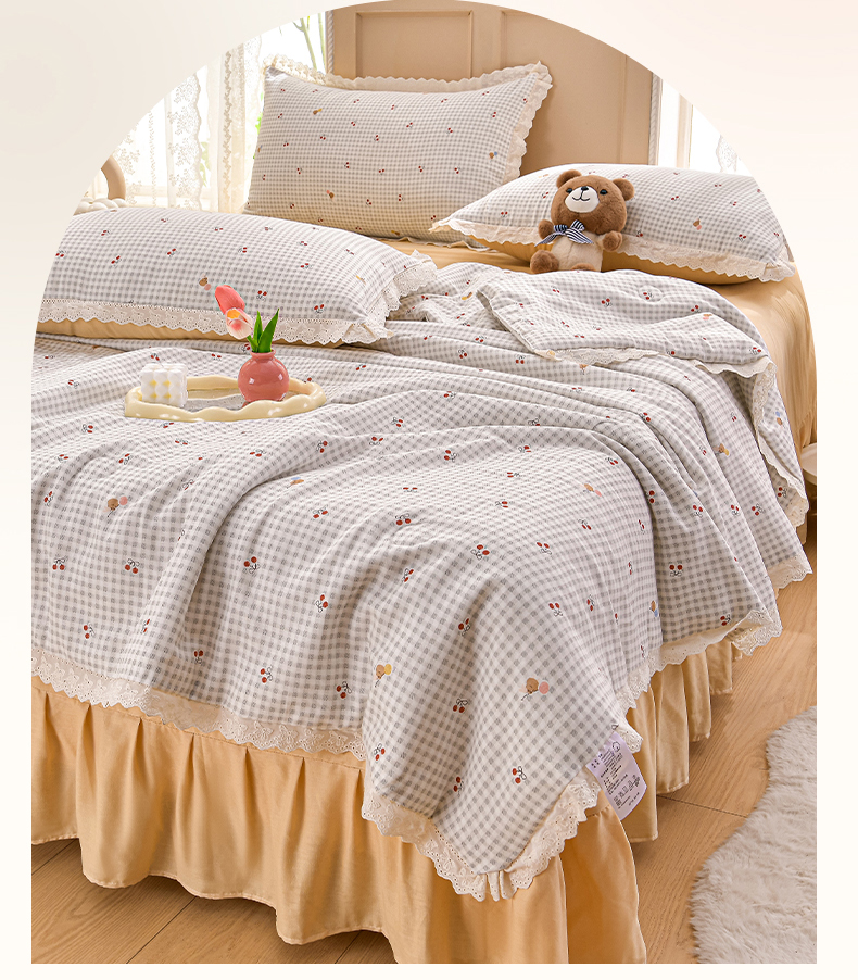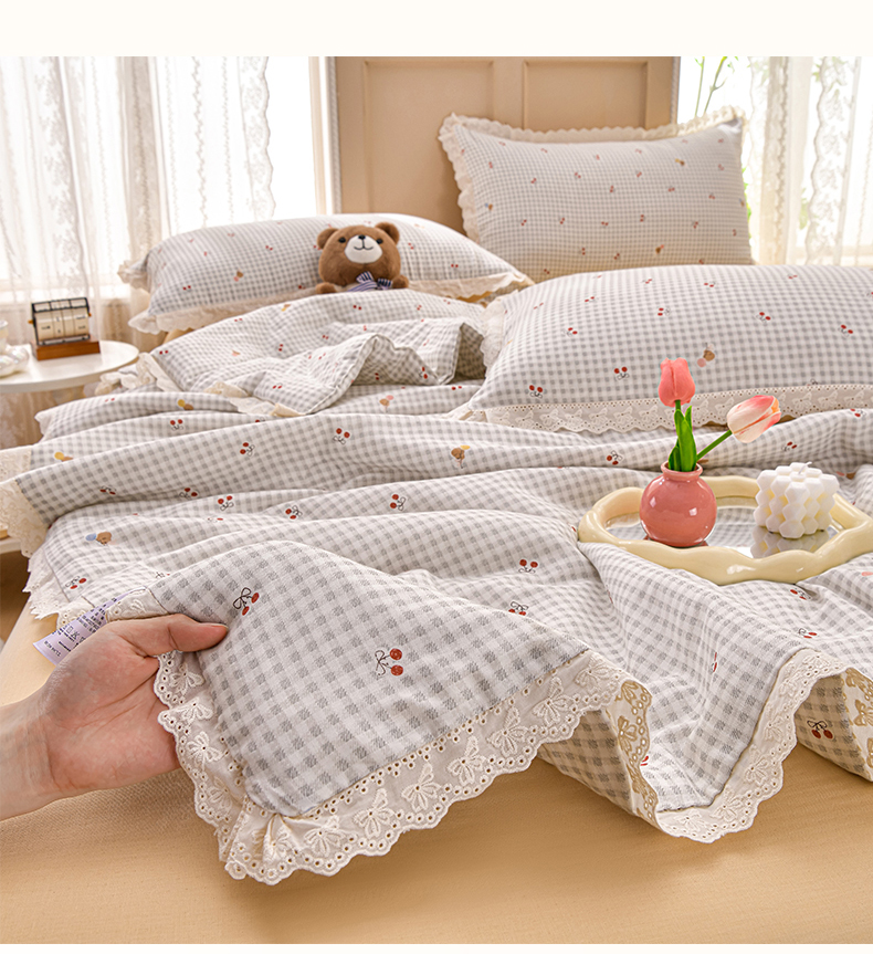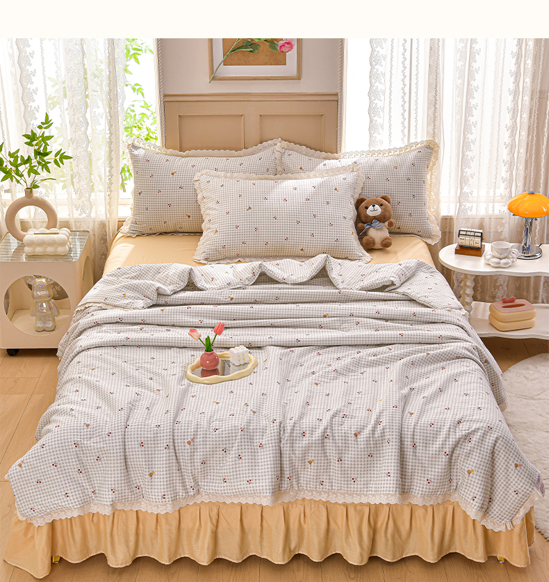 绘萱家居 2025新款100%全棉双层纱花边床裙款夏被四件套