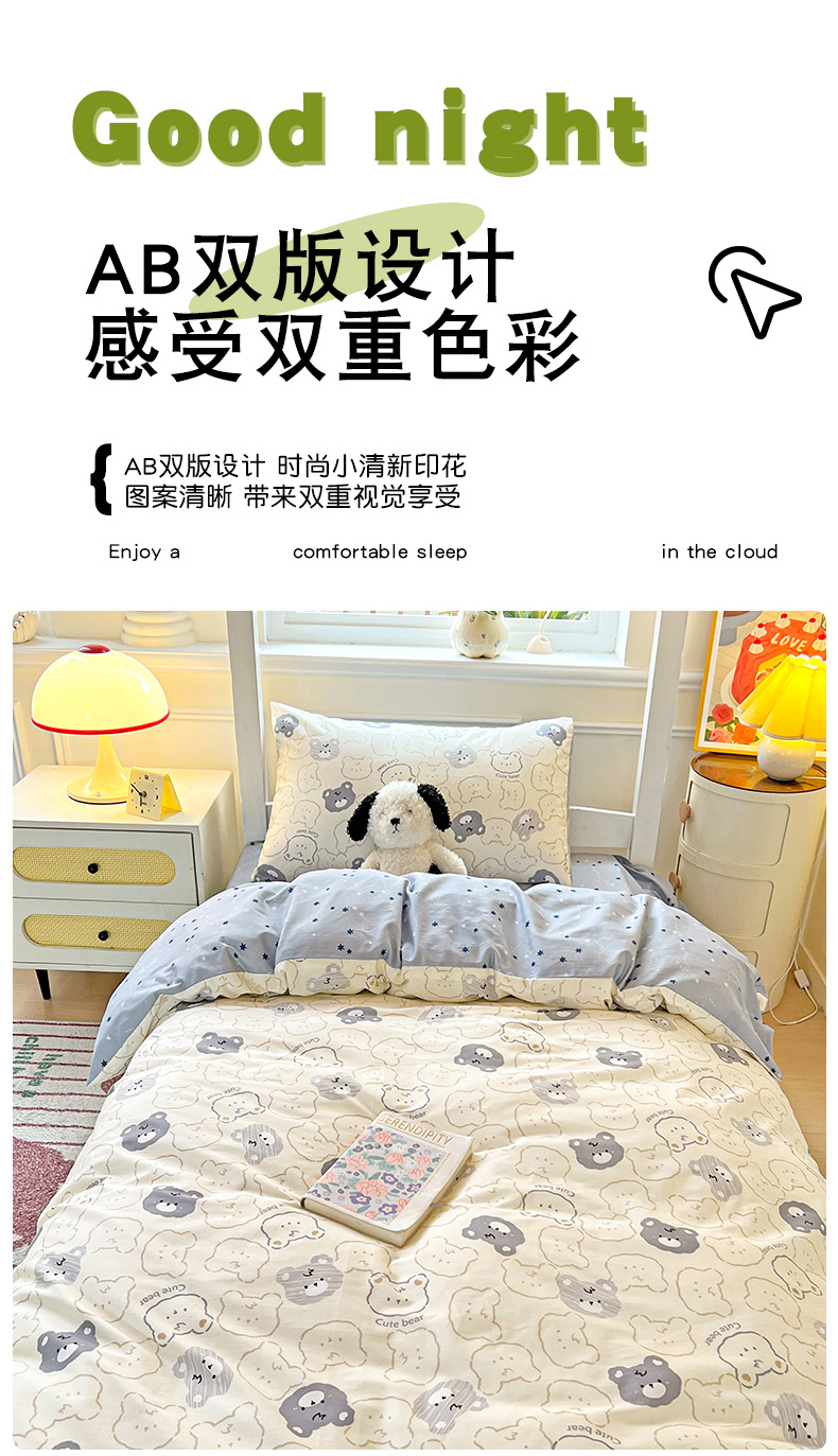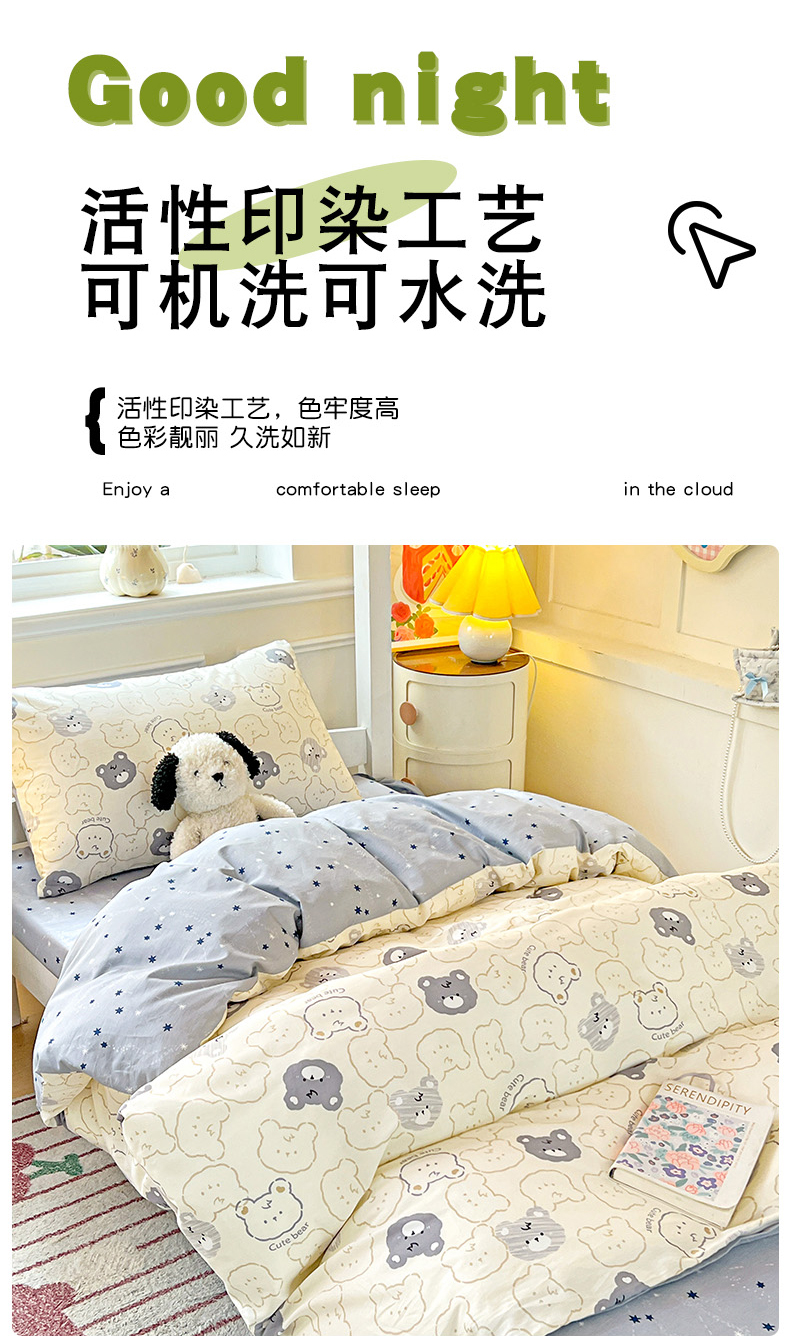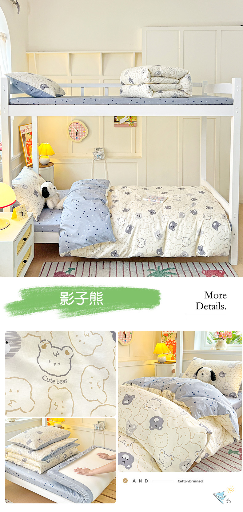 当前位置: 91家纺网 > 商品网购 > 床品套件 > 四件套 > 全棉普通四件套 > 西引力 2025新款全棉印花学生宿舍三件套四件套 影子熊