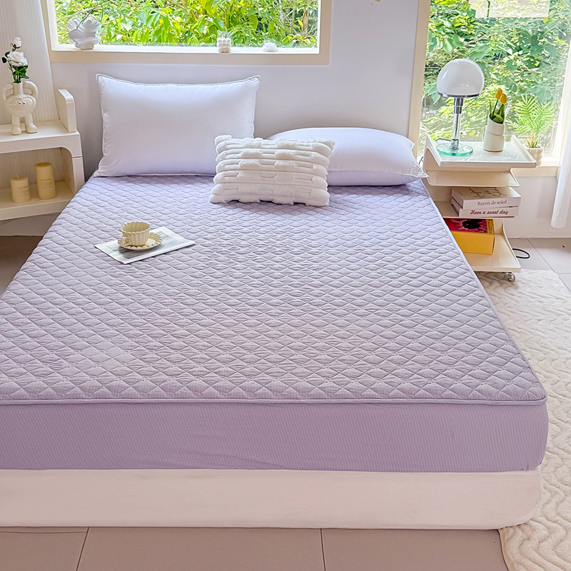 一比一家纺 2025新款皱皱纱夹棉床笠 紫色