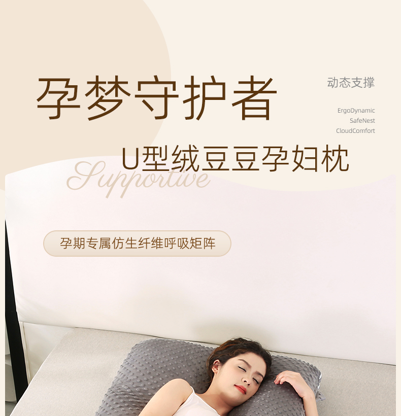 商品名称:永光家居 2025新款孕妇枕U型 绒豆豆红靠枕抱枕床头靠枕