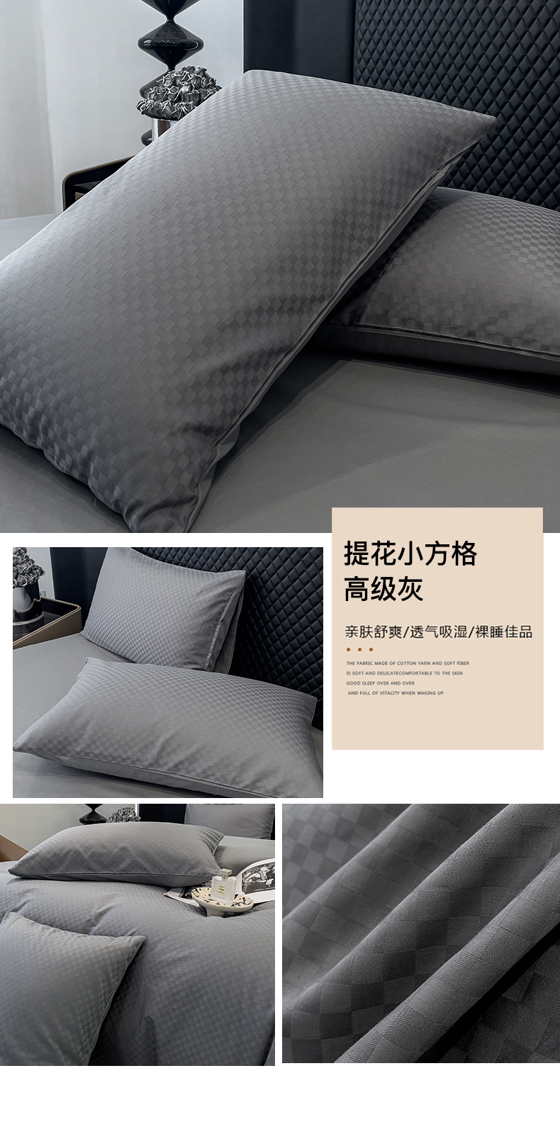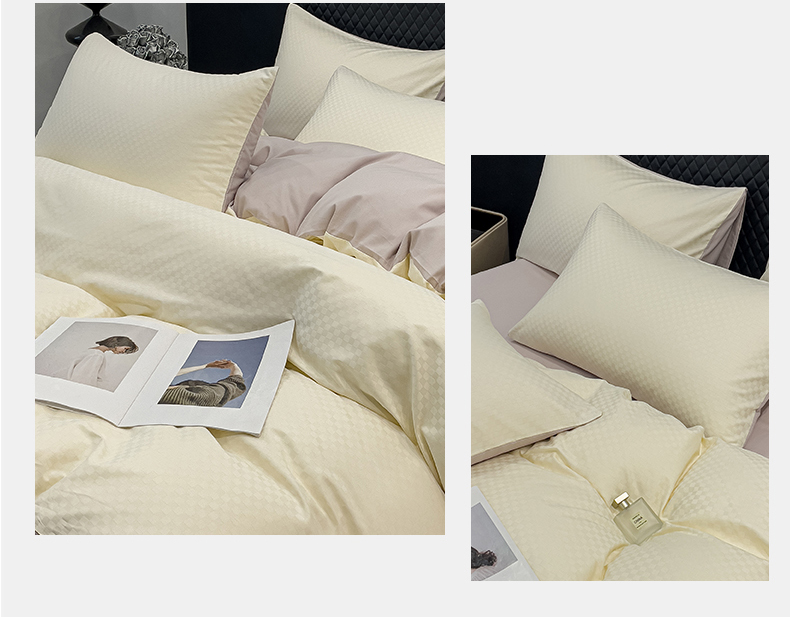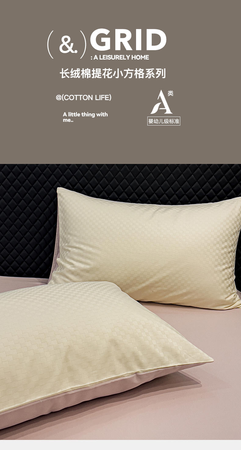 金鑫汇家纺 2024新款长绒棉提花小方格系列四件套单品系列-单枕套 奶昔白+淡紫