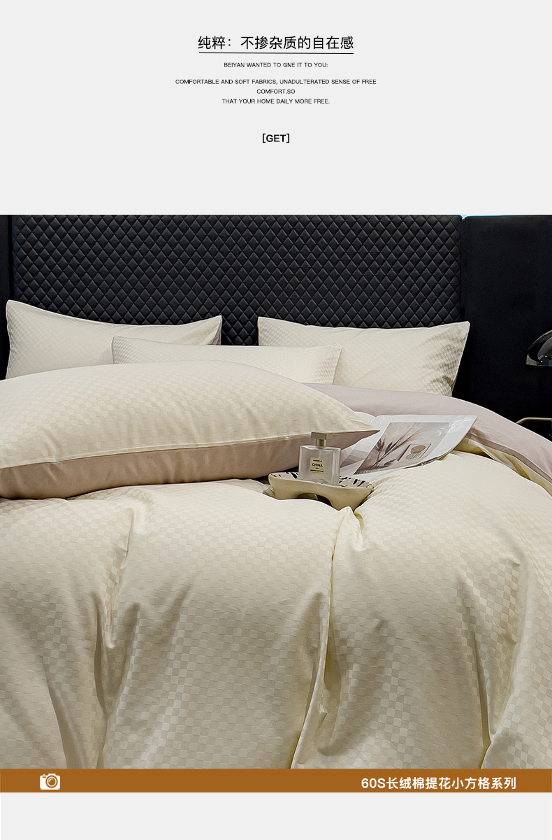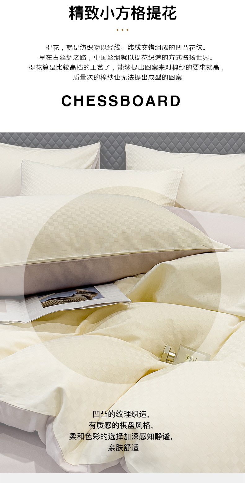 商品名称:金鑫汇家纺 2024新款长绒棉提花小方格系列四件套单品系列-单枕套 奶昔白+淡紫