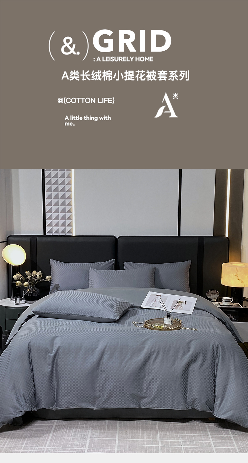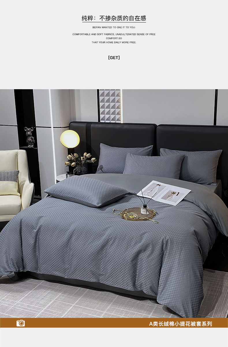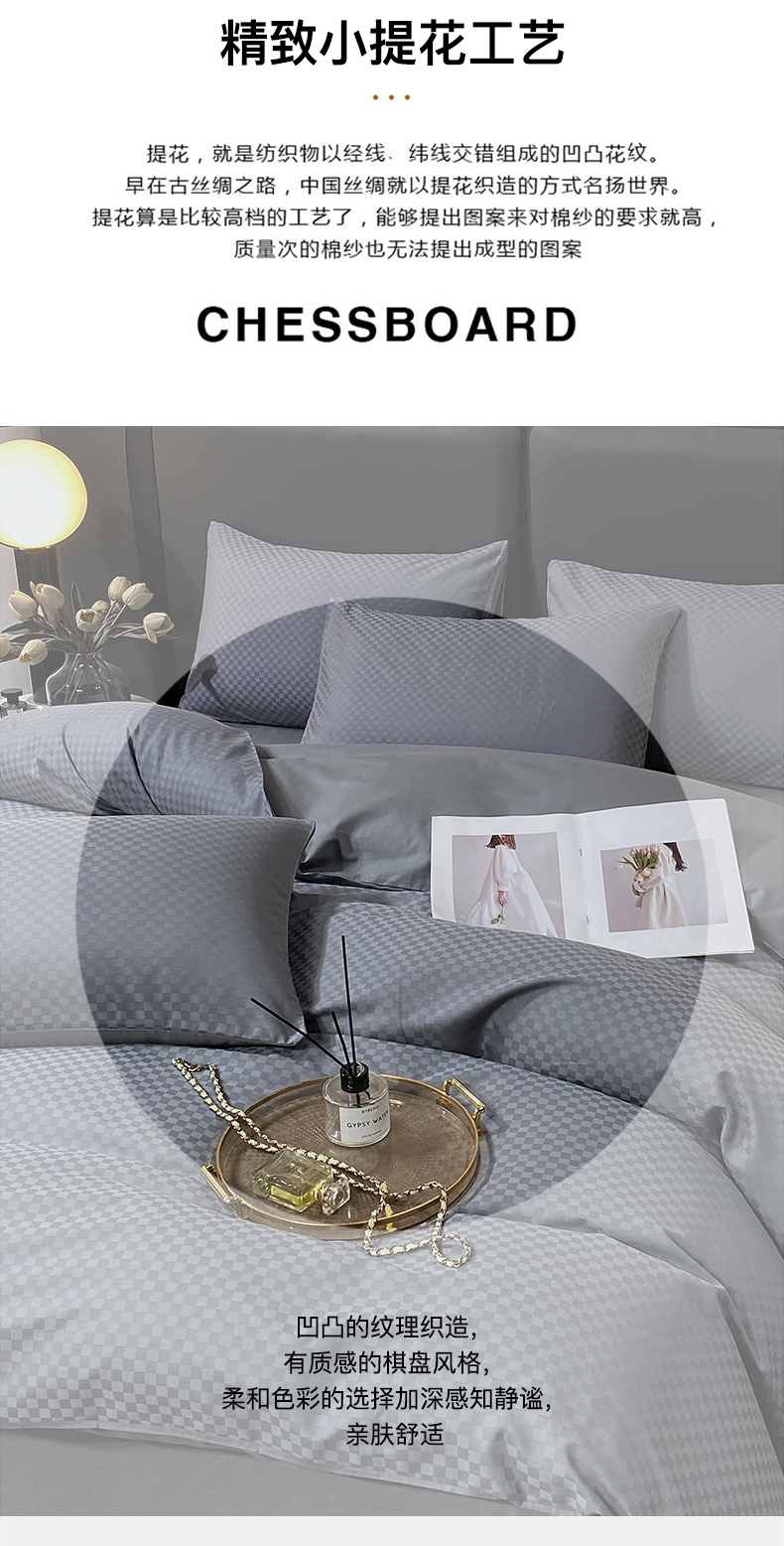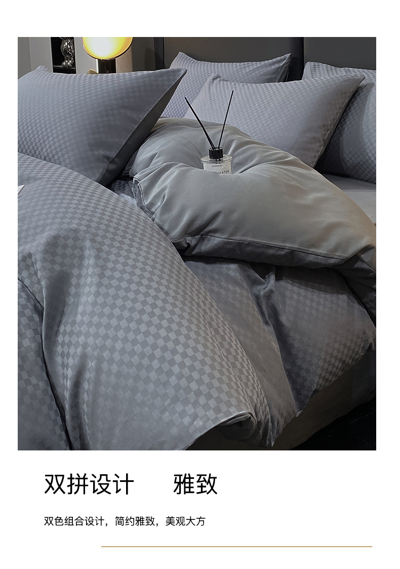 商品名称:金鑫汇家纺 2024新款长绒棉提花小方格系列四件套单品系列-单被套 深灰(新拍)