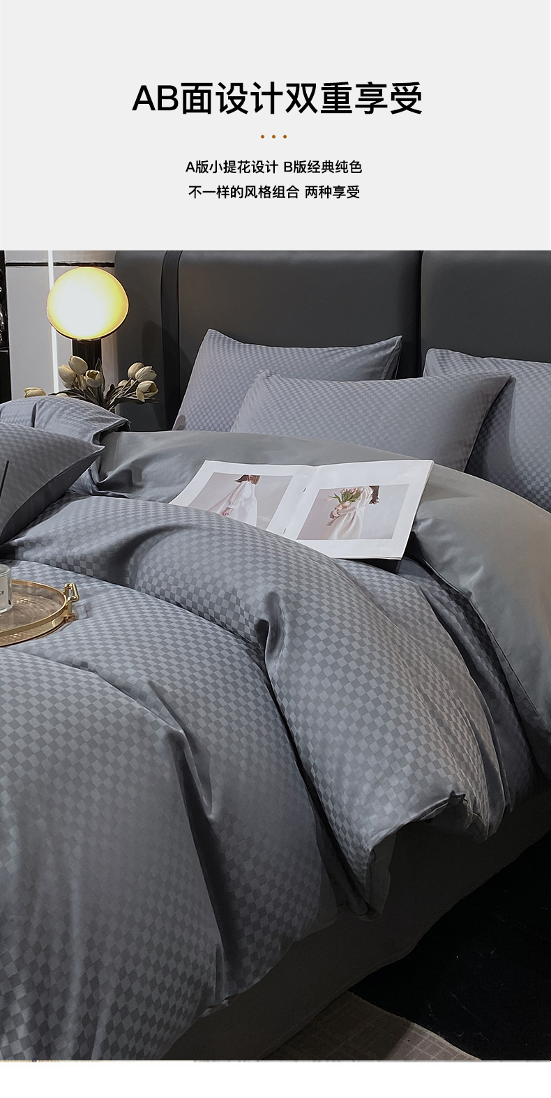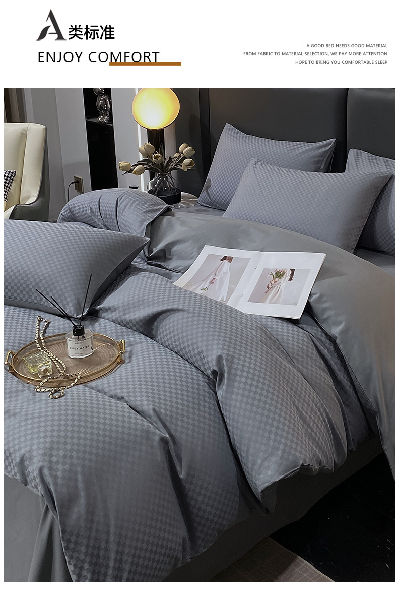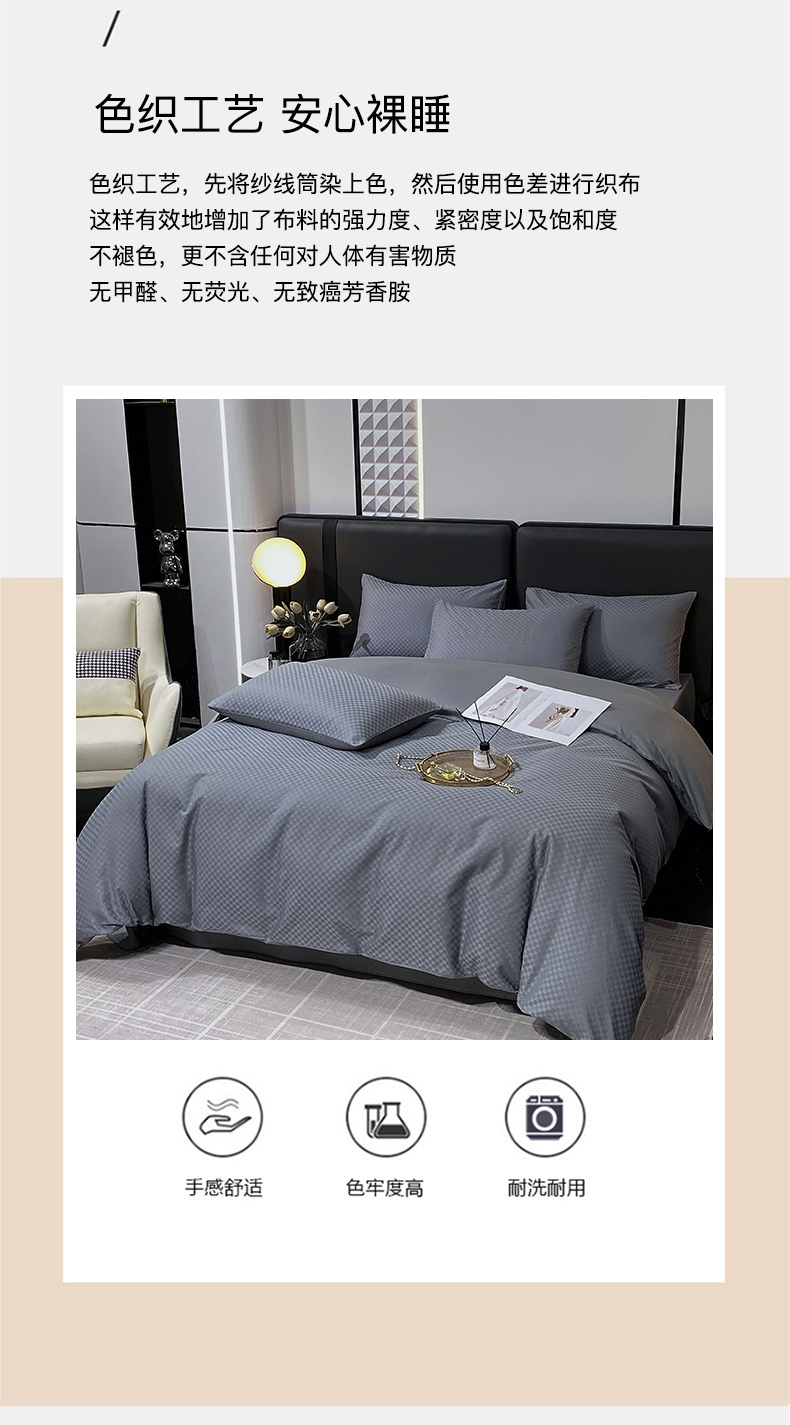 商品名称:金鑫汇家纺 2024新款长绒棉提花小方格系列四件套单品系列-单被套 深灰(新拍)