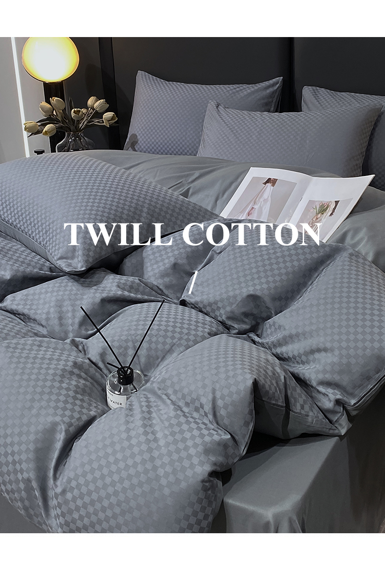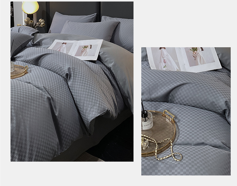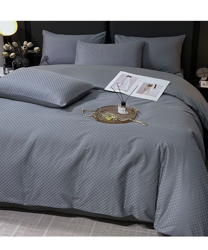 金鑫汇家纺 2024新款长绒棉提花小方格系列四件套单品系列-单被套 深灰(新拍)