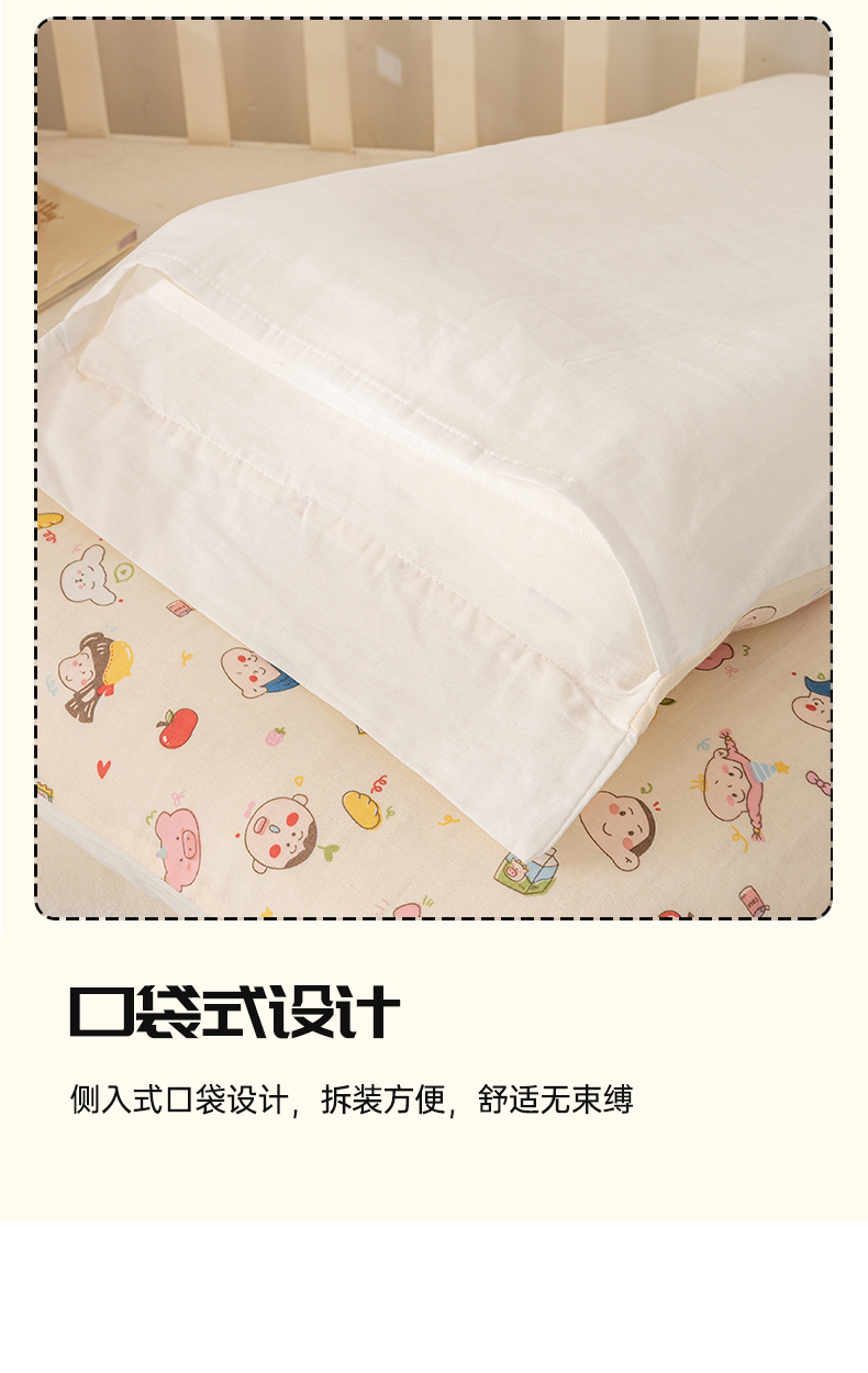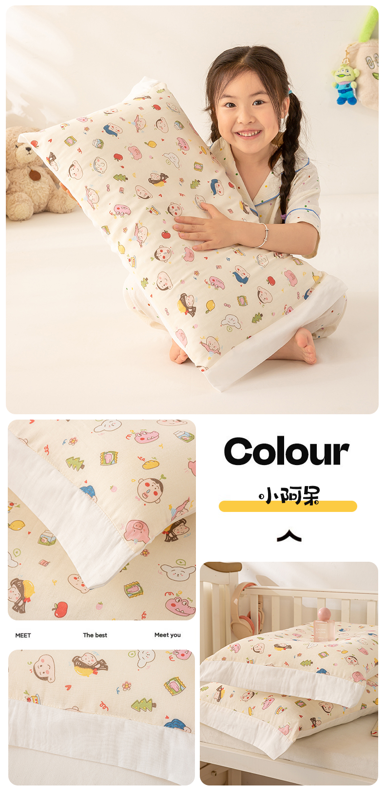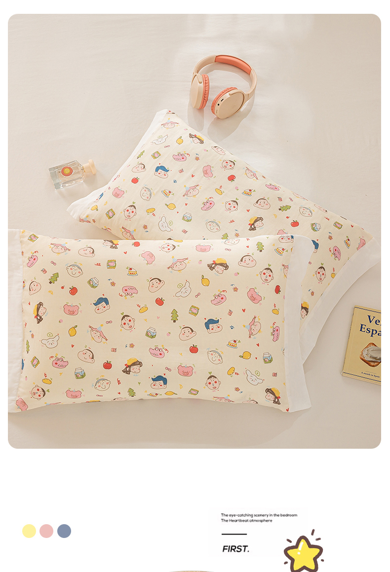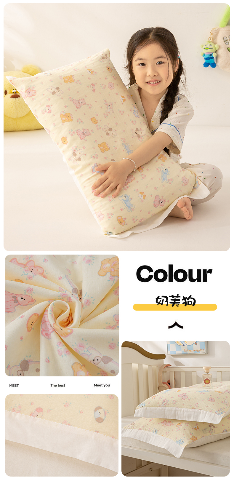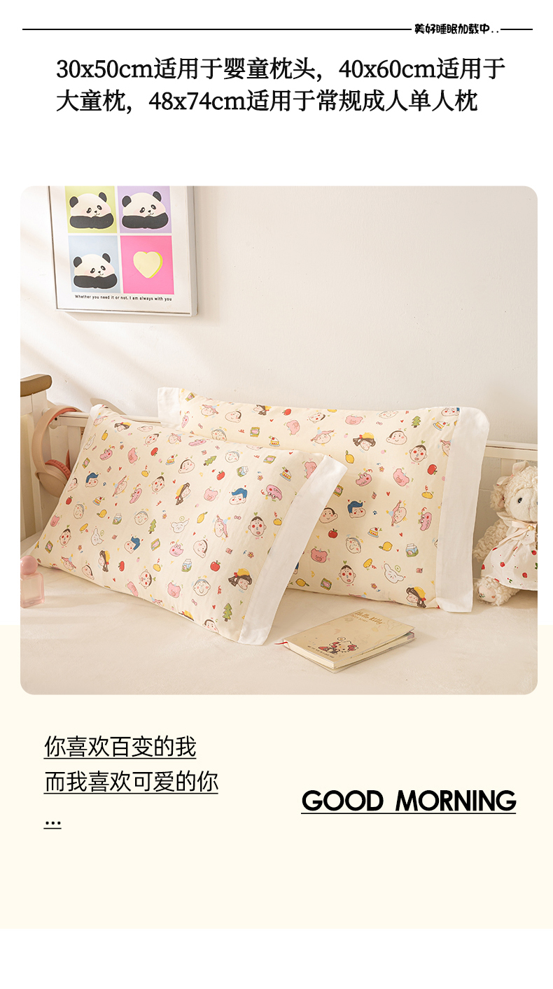 商品名称:灰鲸 2025春夏新款全棉纯棉双层纱压线宽边儿童枕套单枕套 组合图仅供参考