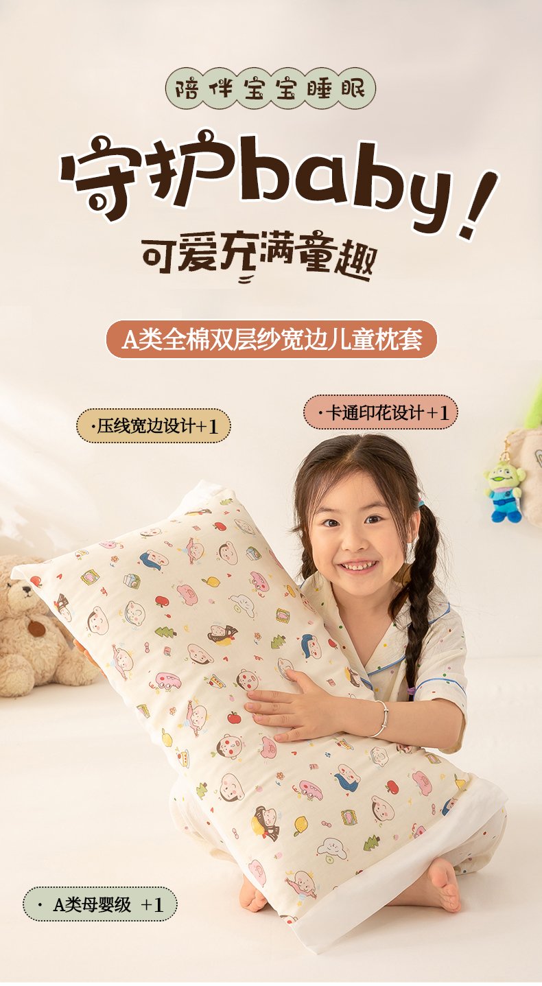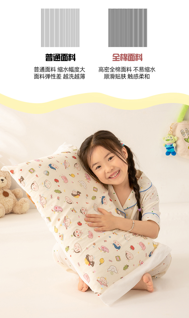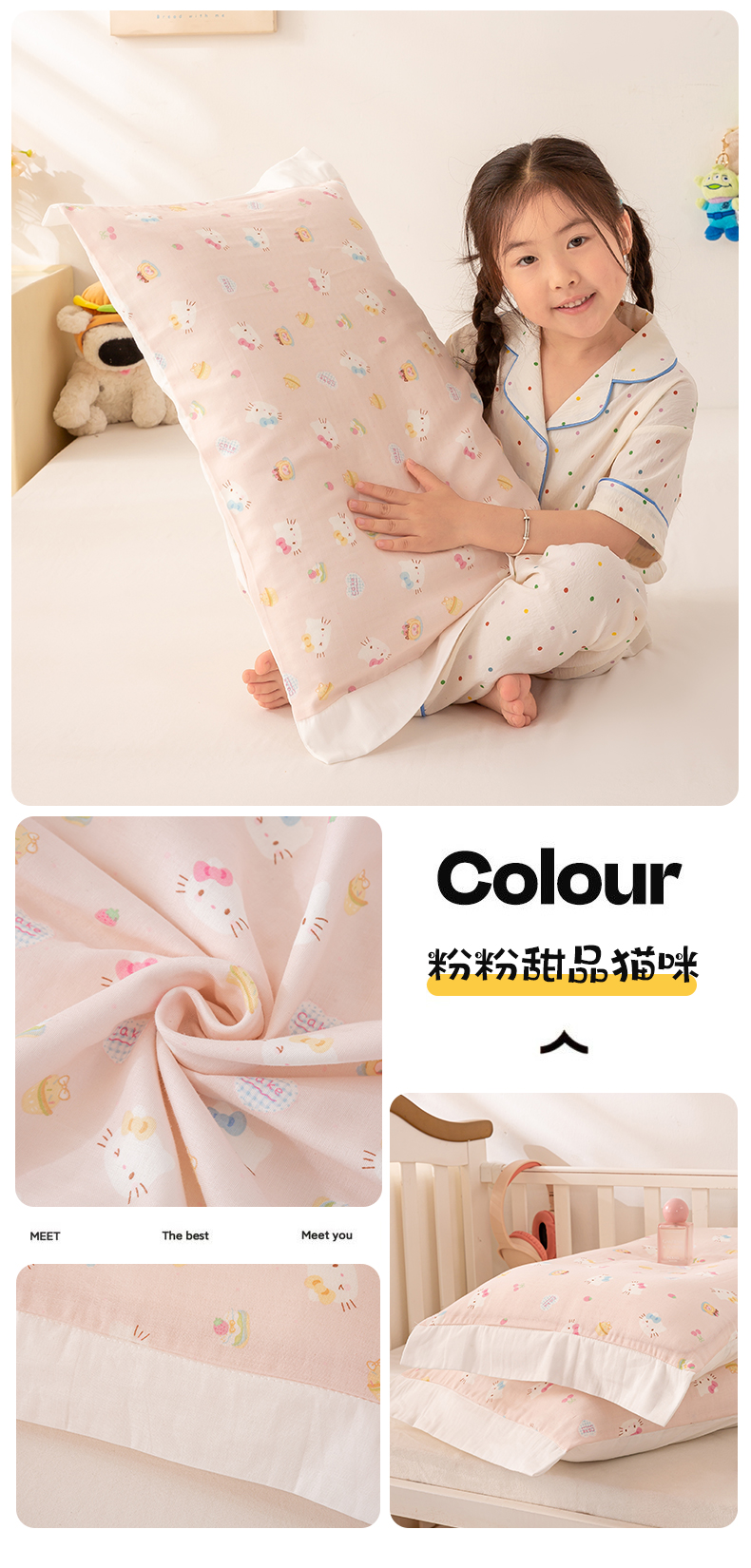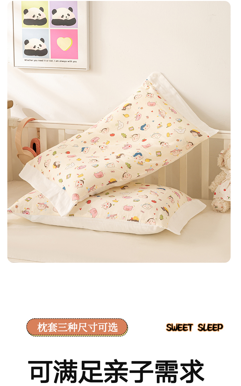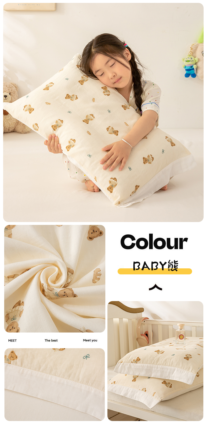 商品名称:灰鲸 2025春夏新款全棉纯棉双层纱压线宽边儿童枕套单枕套 组合图仅供参考