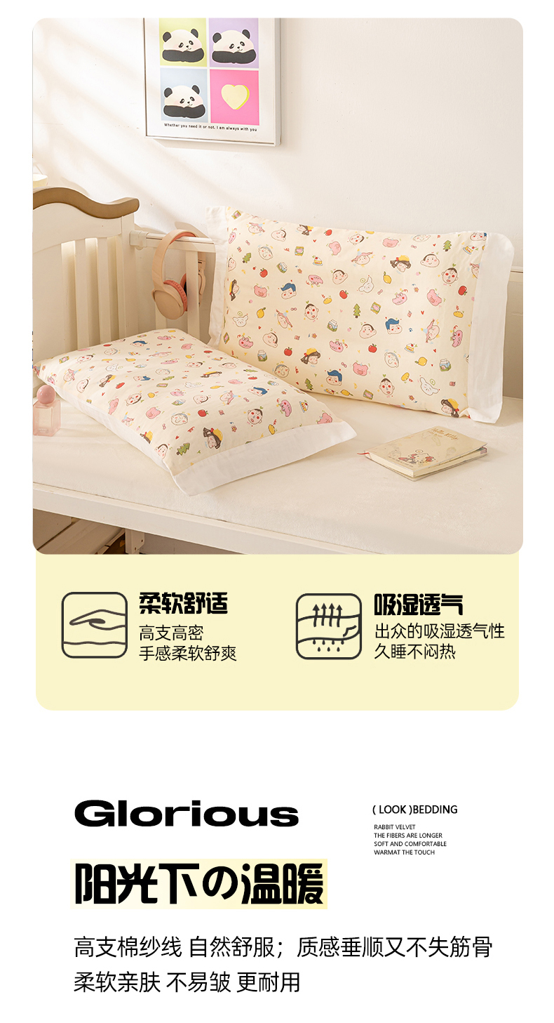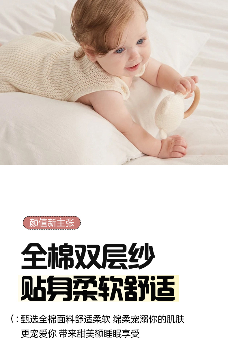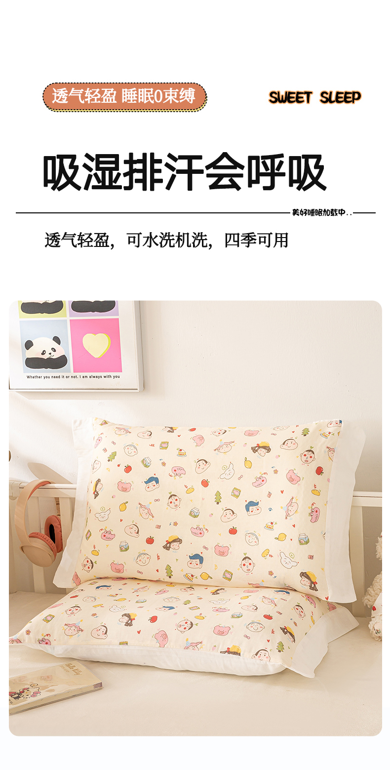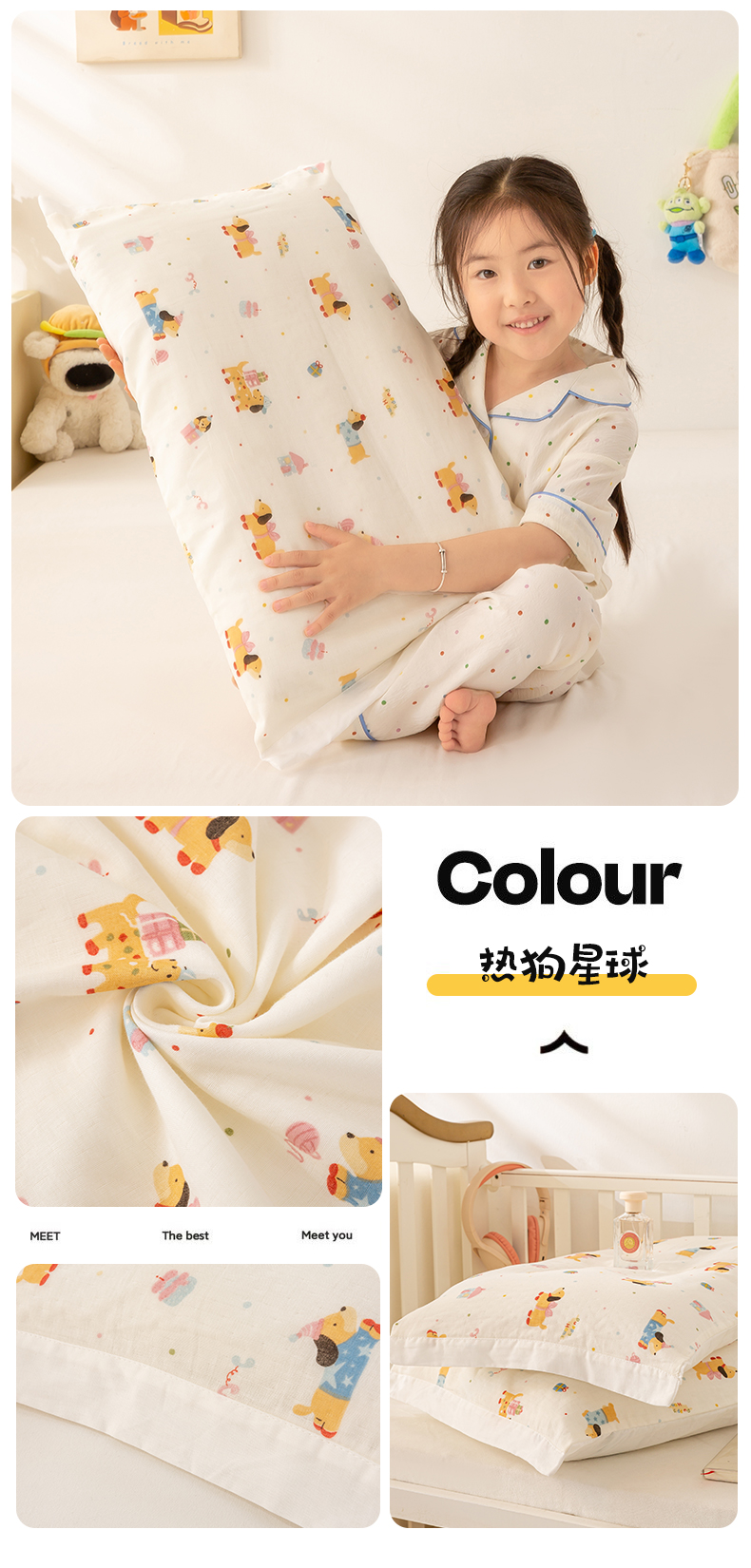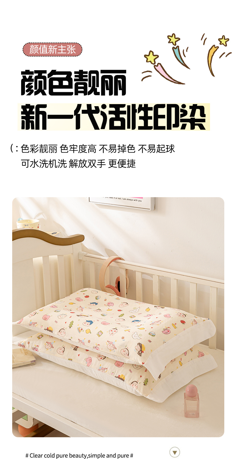 商品名称:灰鲸 2025春夏新款全棉纯棉双层纱压线宽边儿童枕套单枕套 组合图仅供参考