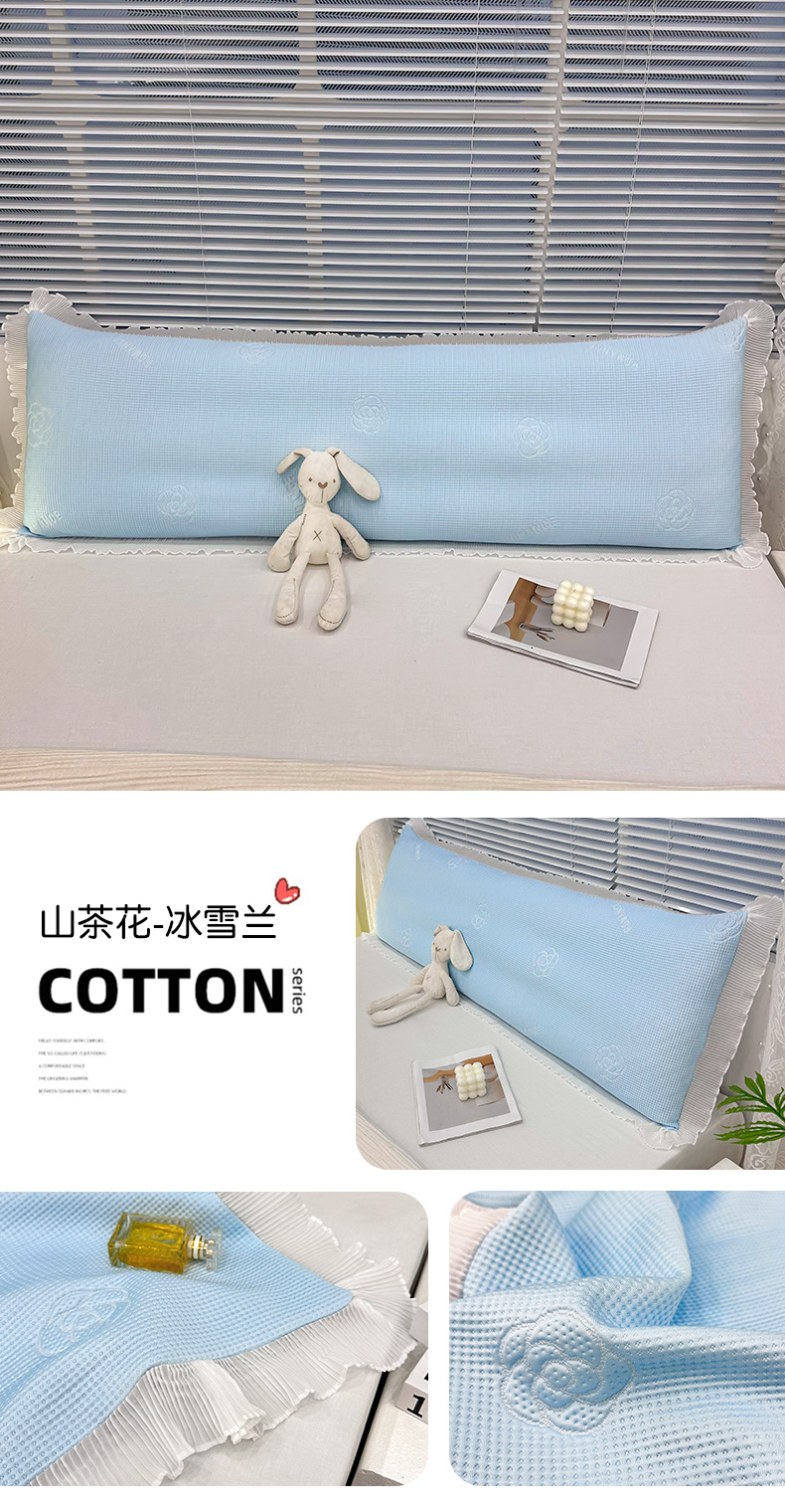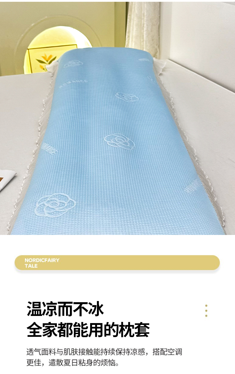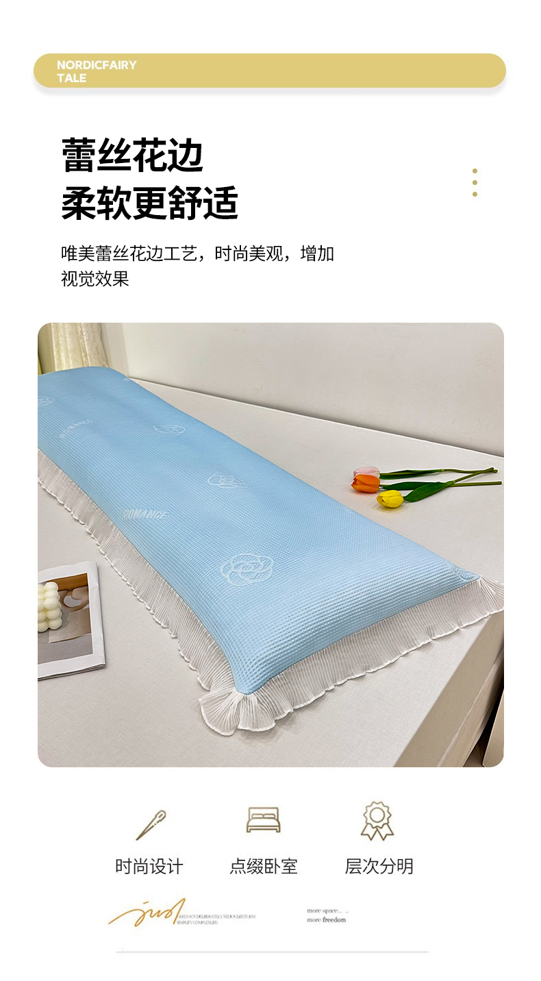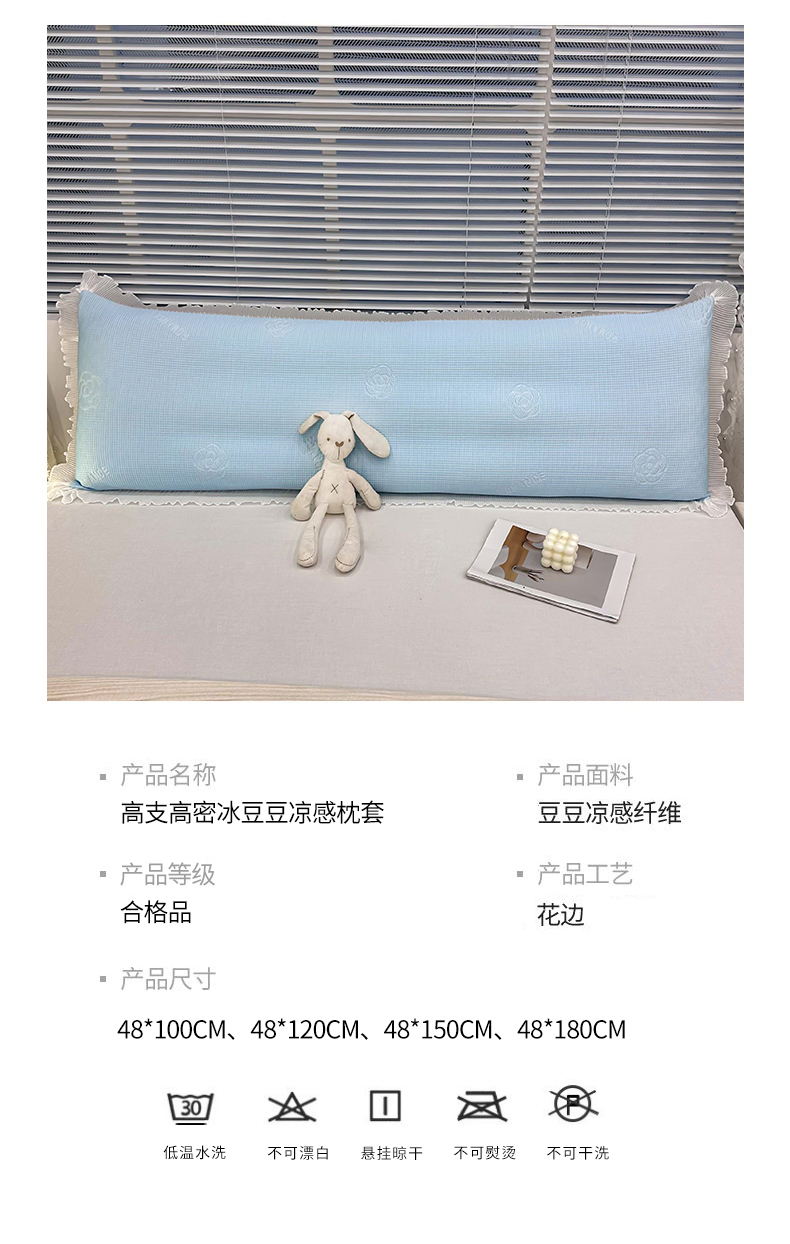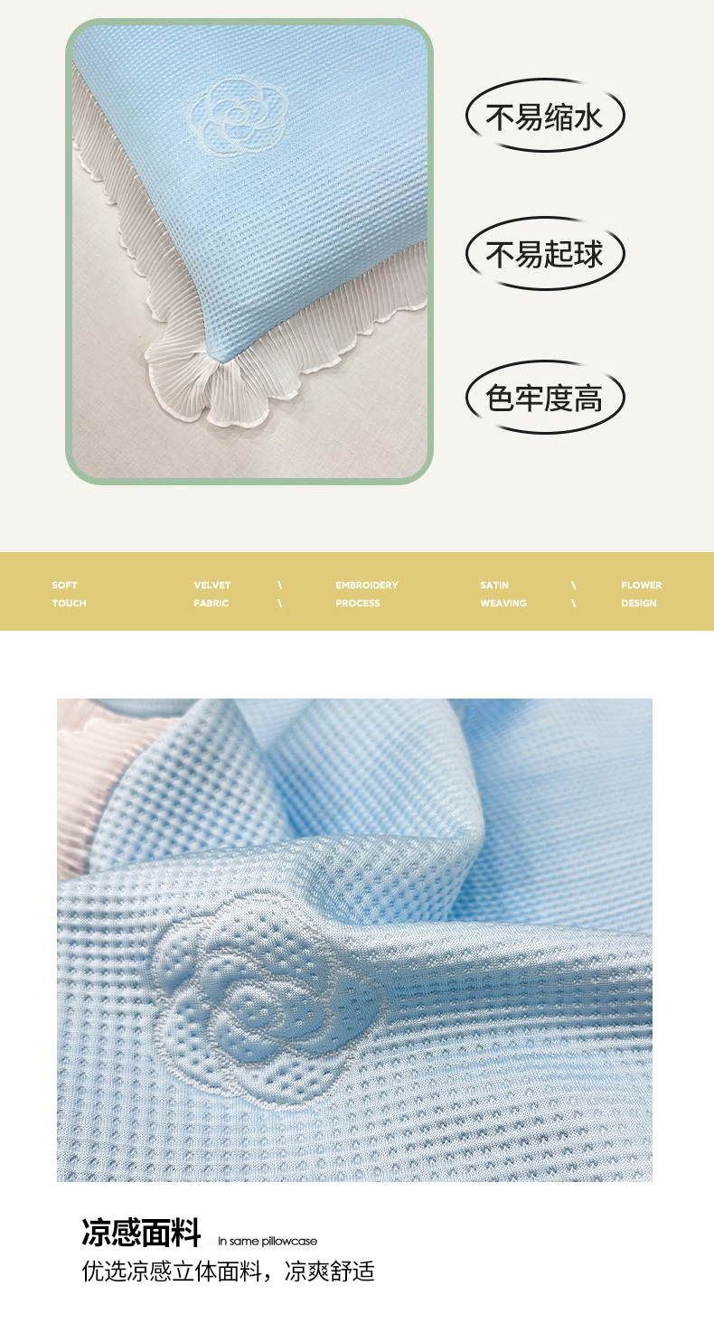 商品名称:雨彤家纺 2025新款冰豆豆蕾丝花边双人长枕套单品枕套枕套单件 山茶花-冰雪兰