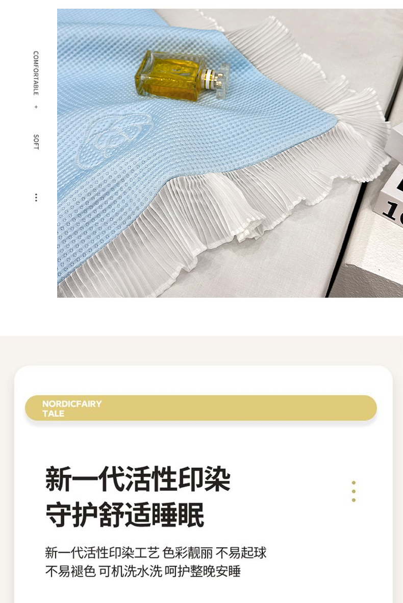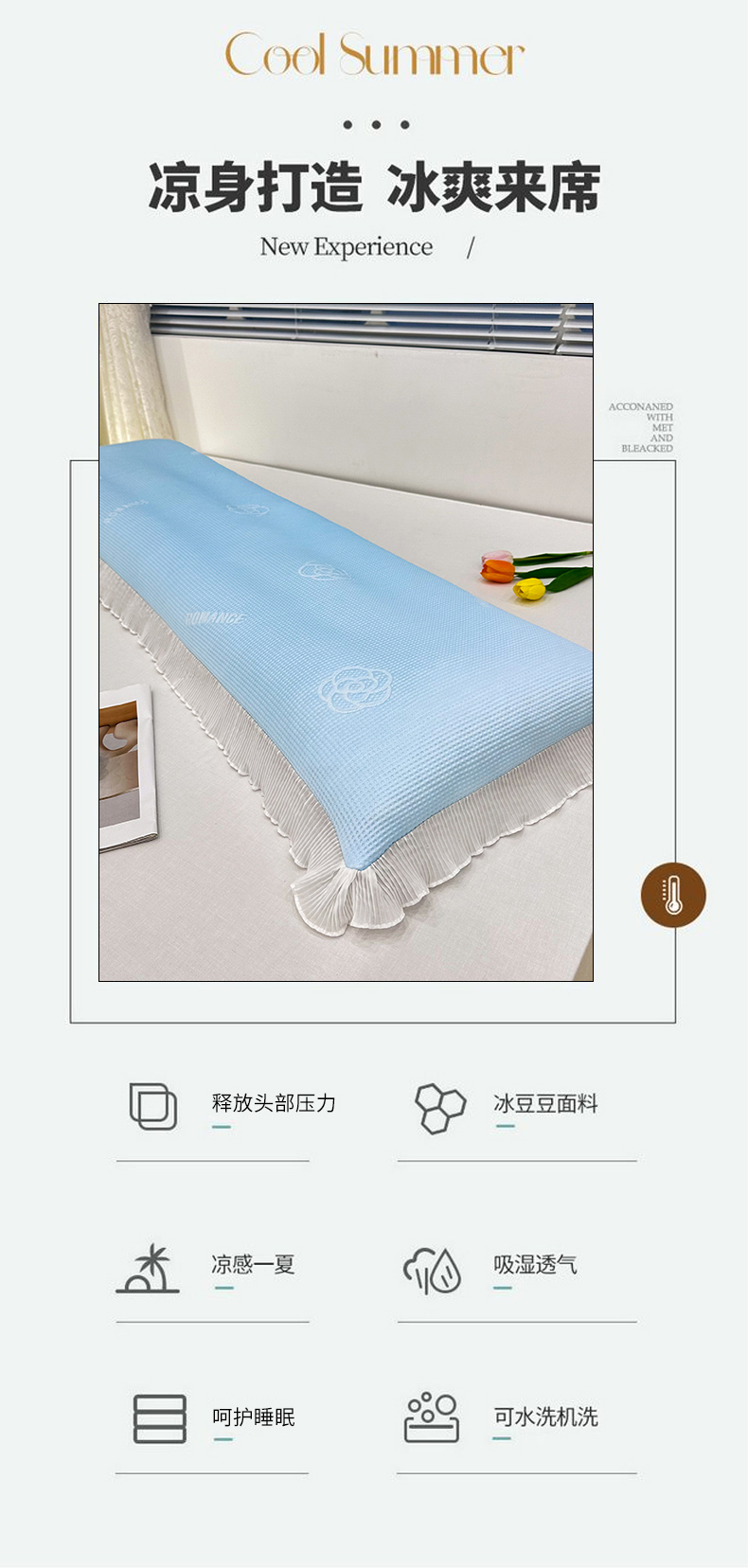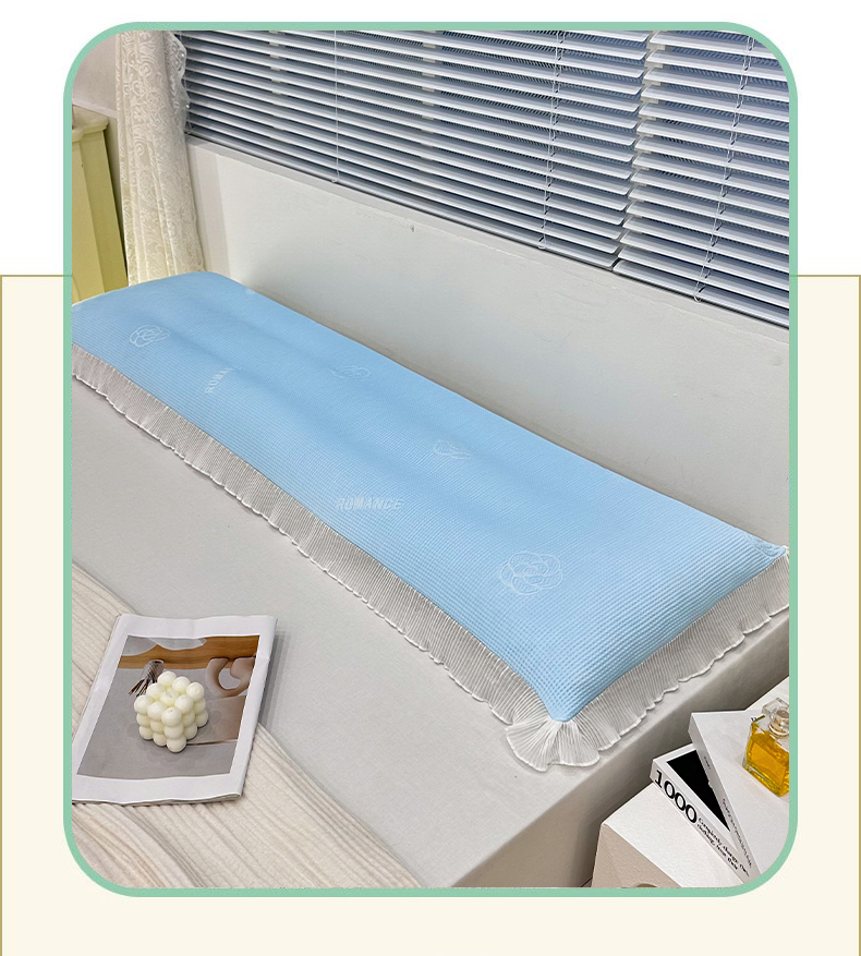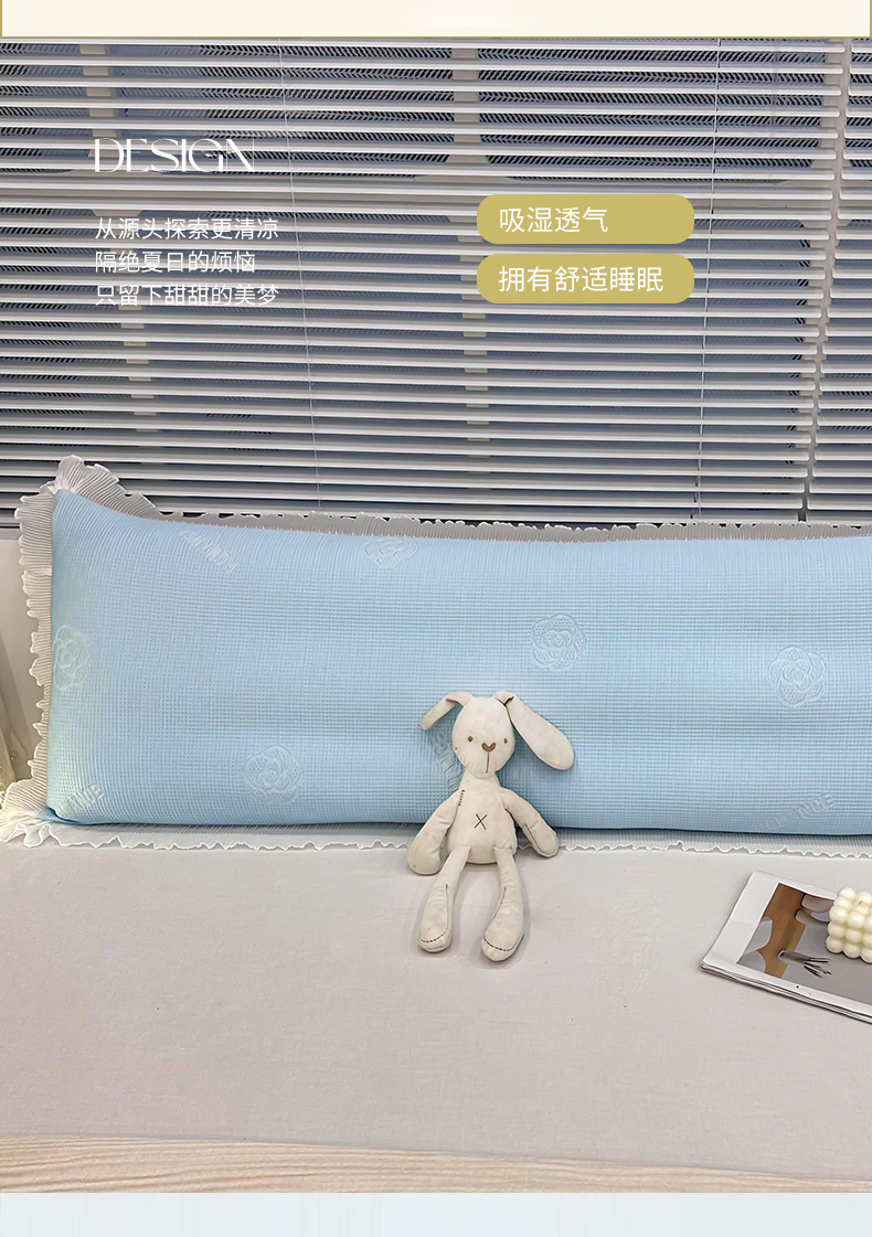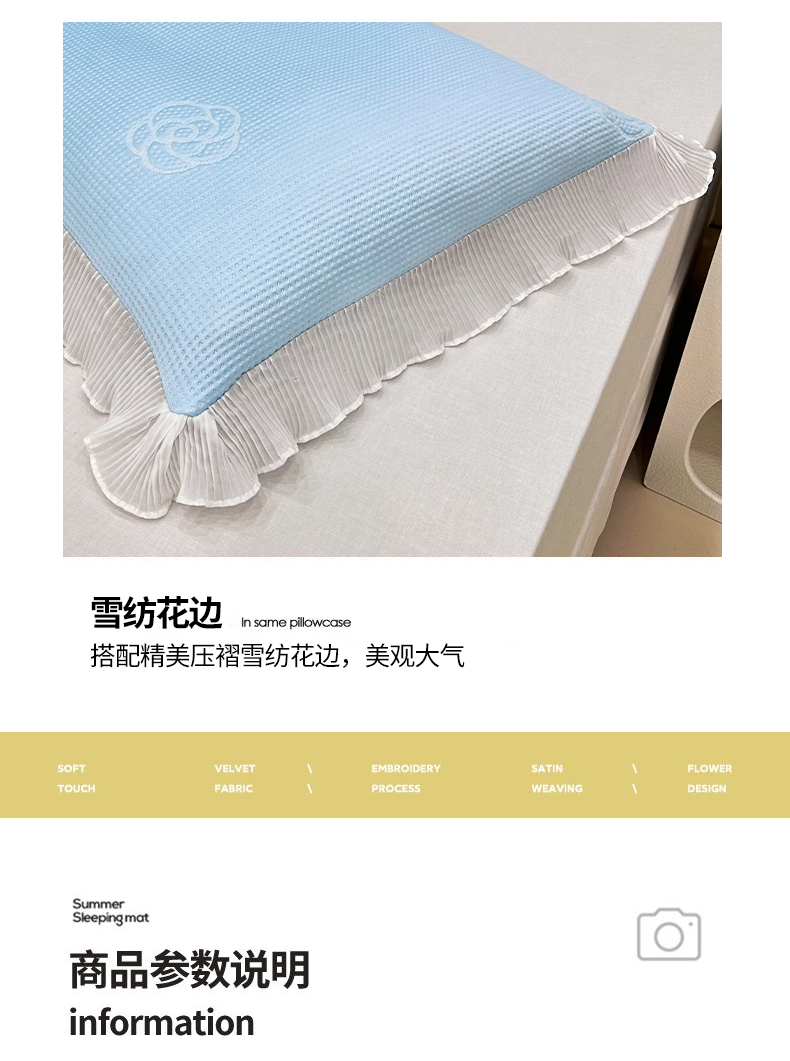 商品名称:雨彤家纺 2025新款冰豆豆蕾丝花边双人长枕套单品枕套枕套单件 山茶花-冰雪兰