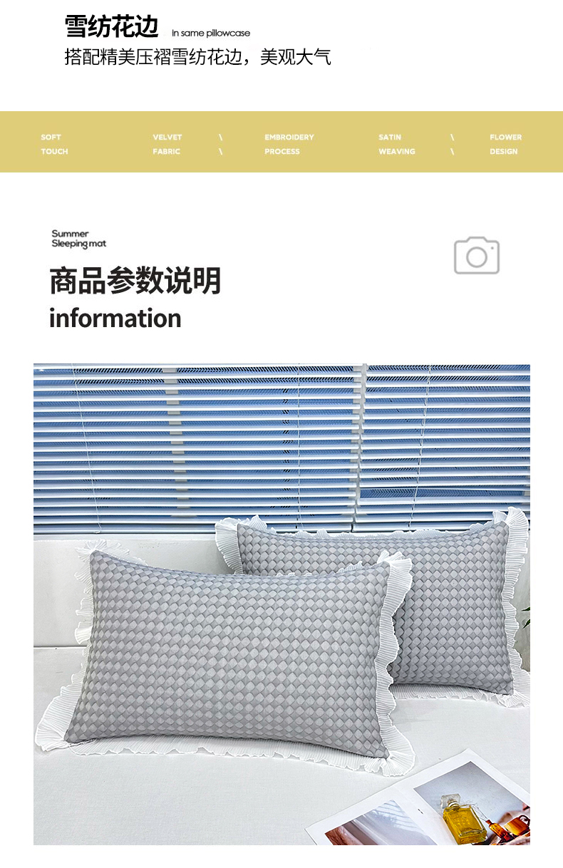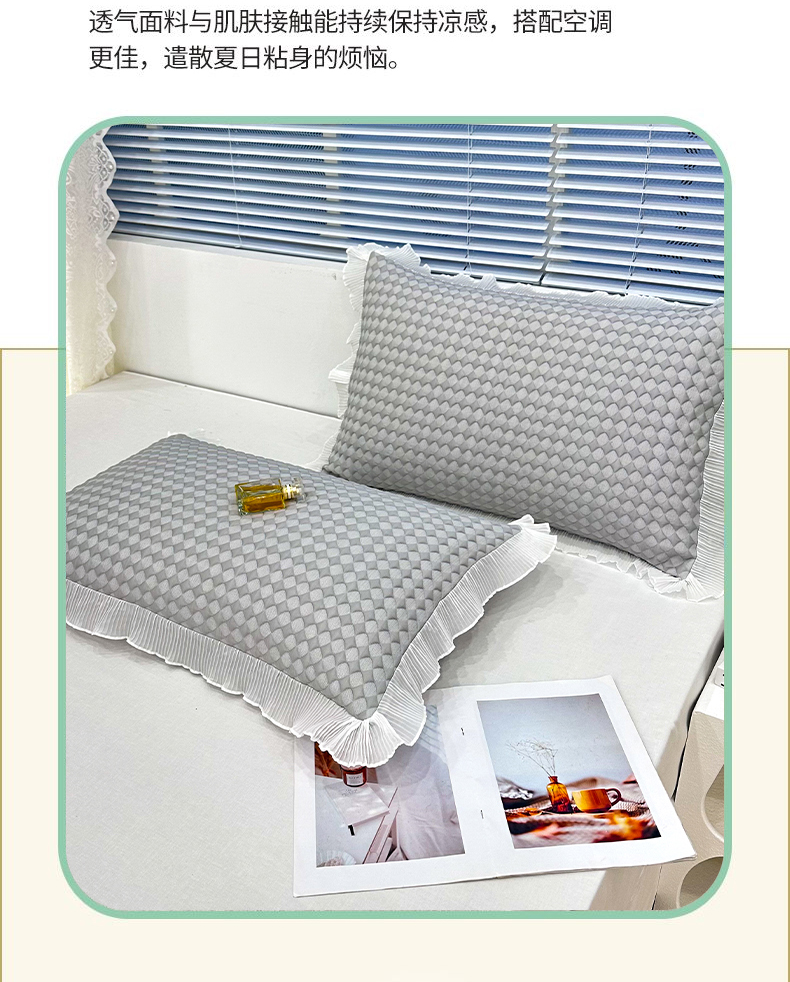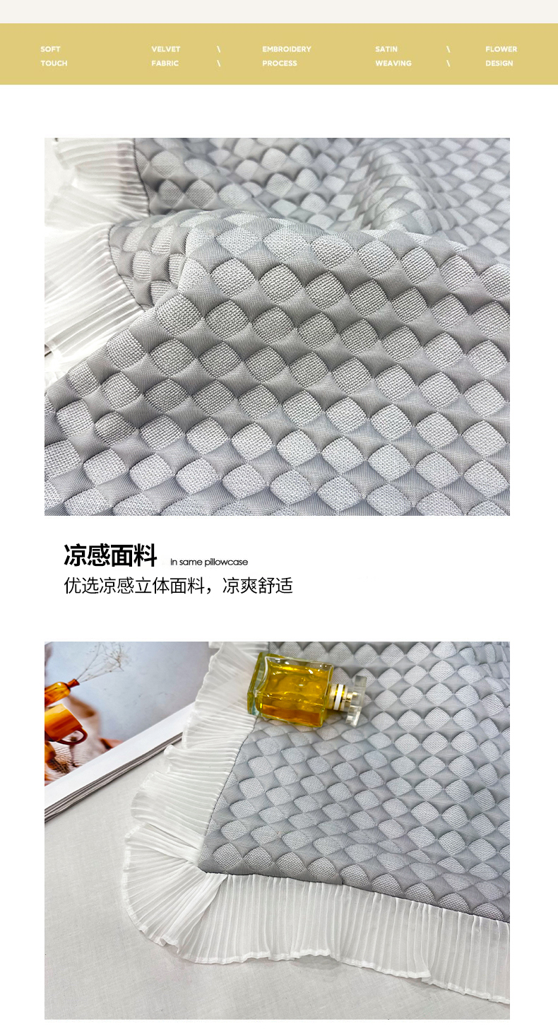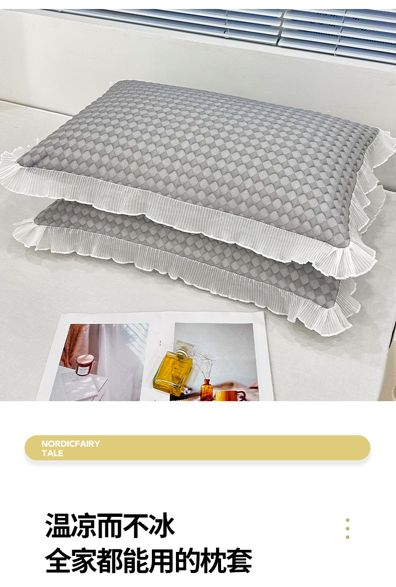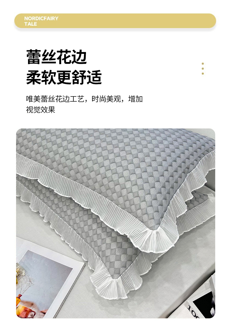 商品名称:雨彤家纺 2025新款冰豆豆蕾丝花边单人枕套单品枕套枕套单件 小菱形-灰