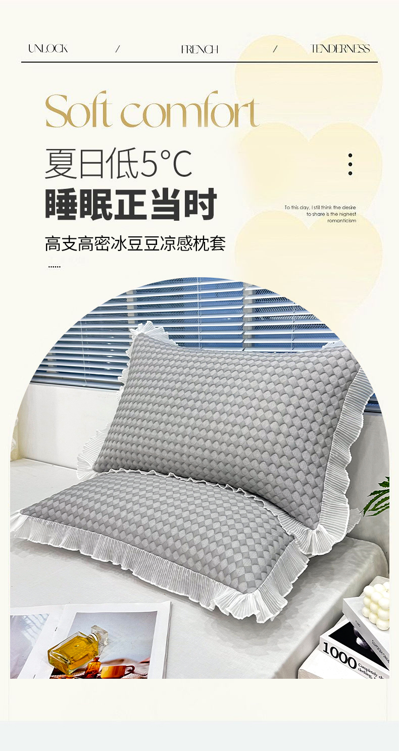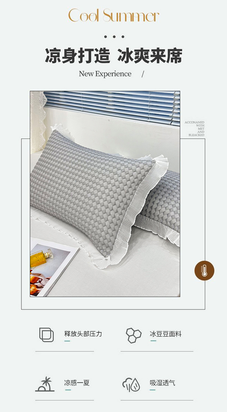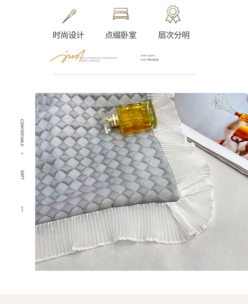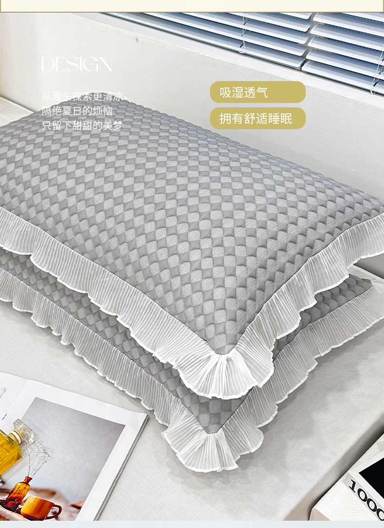 商品名称:雨彤家纺 2025新款冰豆豆蕾丝花边单人枕套单品枕套枕套单件 小菱形-灰